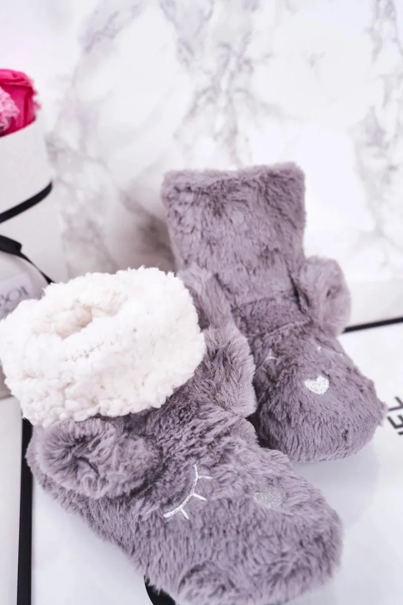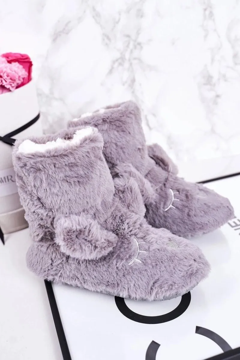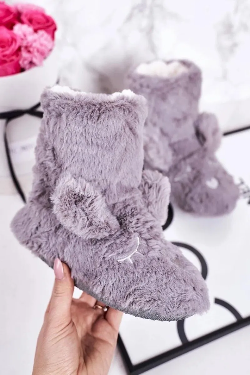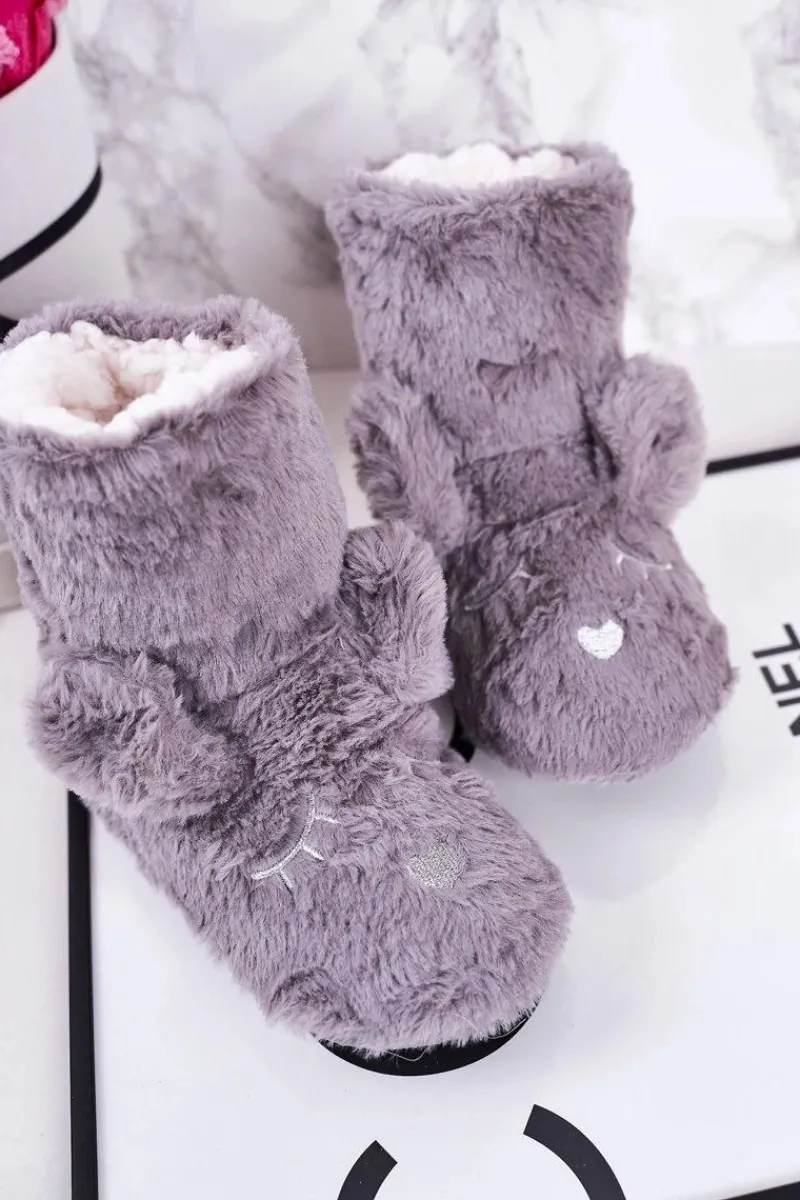 Discount Dziecięce Papcie Ocieplane Kożuszkiem Szare Sleepyhead Dzieci Dziewczęce