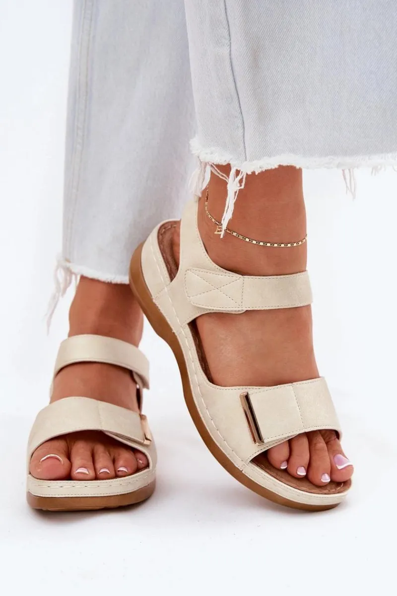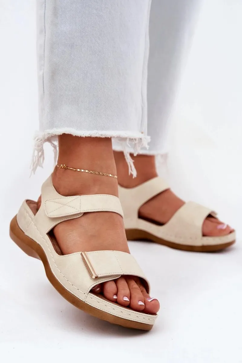 Sandały damskie na rzep wykonane z eko skóry to doskonałe połączenie stylu i wygody. Ich prosty design sprawia, że są one uniwersalnym dodatkiem do letnich stylizacji. Wykonane z wysokiej jakości materiałów, zapewniają trwałość i komfort noszenia. Idealne na ciepłe dni, zapewniają lekkość i swobodę ruchu. Miękka wkładka z efektem poduszki jest niezwykle wygodna podczas użytkowania. Przy wyborze rozmiaru prosimy sugerować się tabelą rozmiarów.