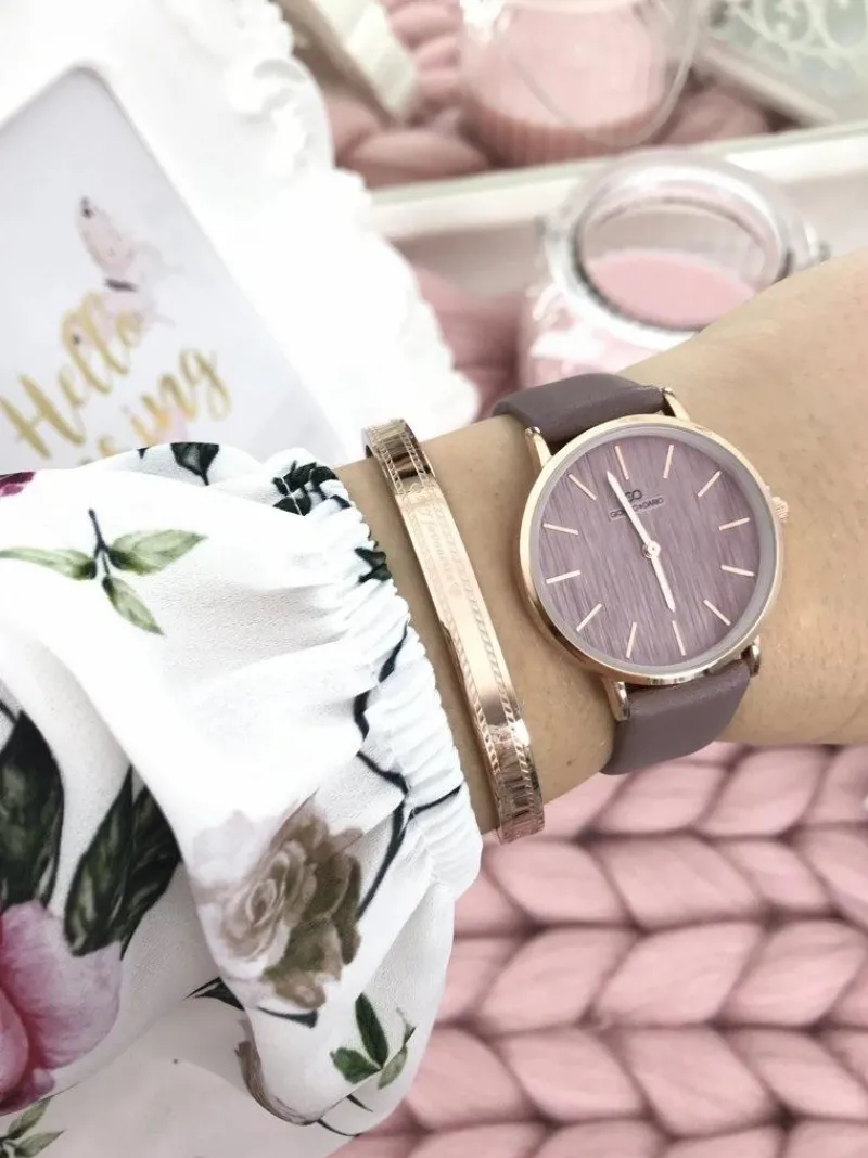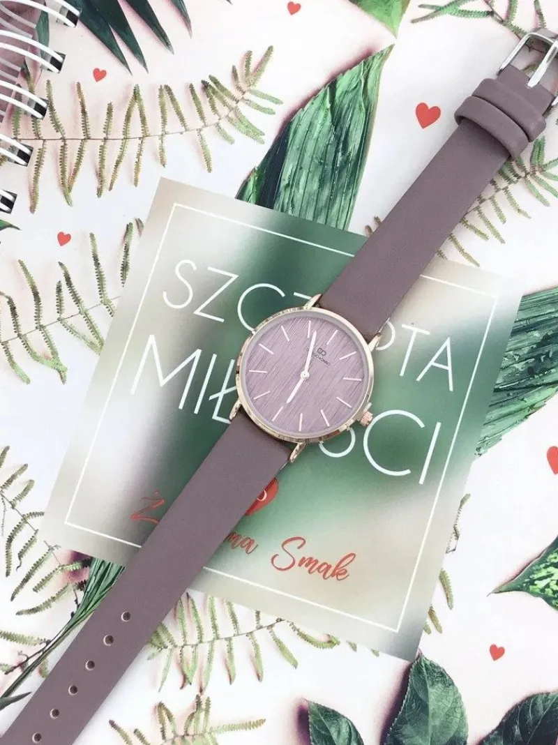 Jules to klasyczna i elegancka linia damskich zegarków Giorgio & Dario. Zegarek posiada delikatnie płaskie szkiełko, dzięki temu jeszcze lepiej prezentuje się na ręce a jednocześnie jest bardziej czytelny. Pasek wykonany z delikatnej w dotyku skóry ekologicznej z możliwością łatwiej regulacji, koperta w złotym kolorze ze stali chirurgicznej, pasuje zarówno do eleganckich jak i codziennych stylizacji. Wysoka jakość wykonania mechanizmu i koperty.