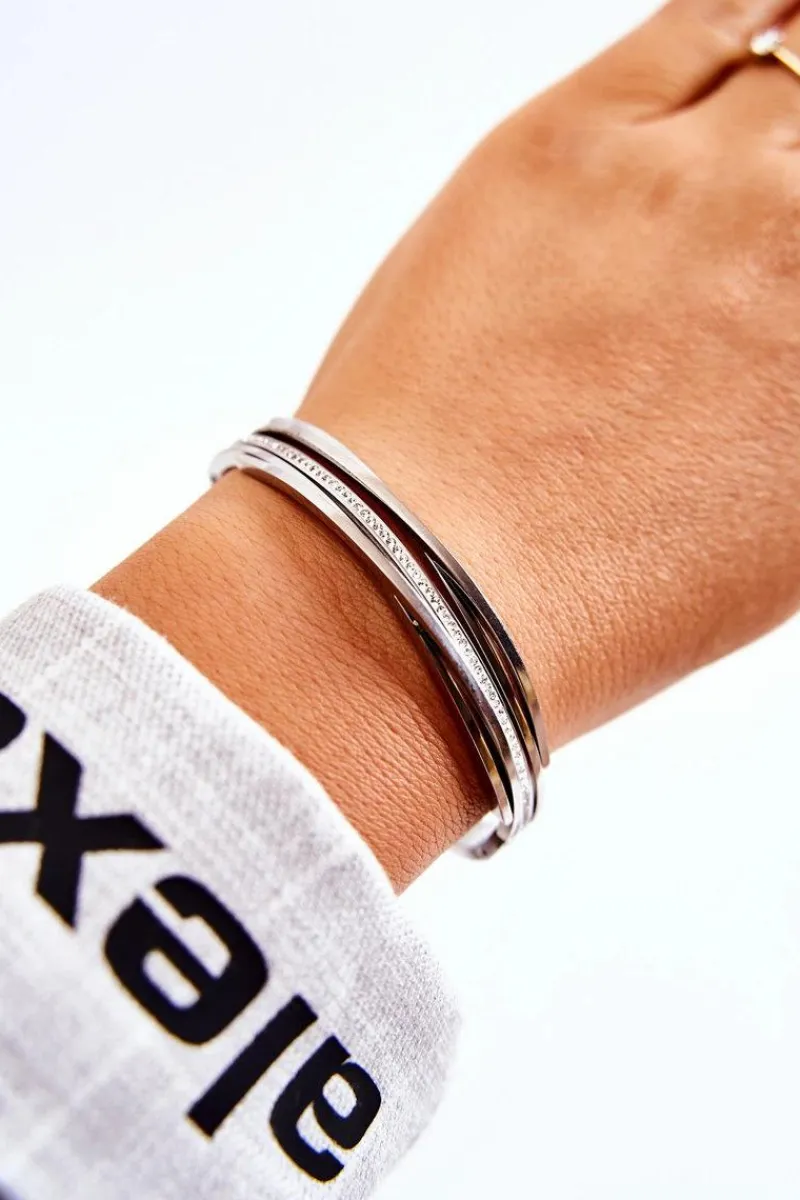 Discount Glam Chic Damska Bransoleta Stalowa Z Cyrkoniami Srebrna Myrens