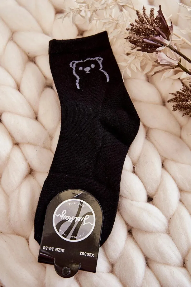 Klasyczne, damskie skarpetki zostały wykonane w 100% z bawełny. Gładki model za kostkę posiada niewielki motyw misia na górze skarpety. Ściągacz świetnie dopasuje się do tęgości nogi. Idealne do wielu rodzajów obuwia. Świetnie sprawdzą się w sezonie jesienno-wiosennym. Koniecznie sprawdź także pozostałe modele skarpetek!