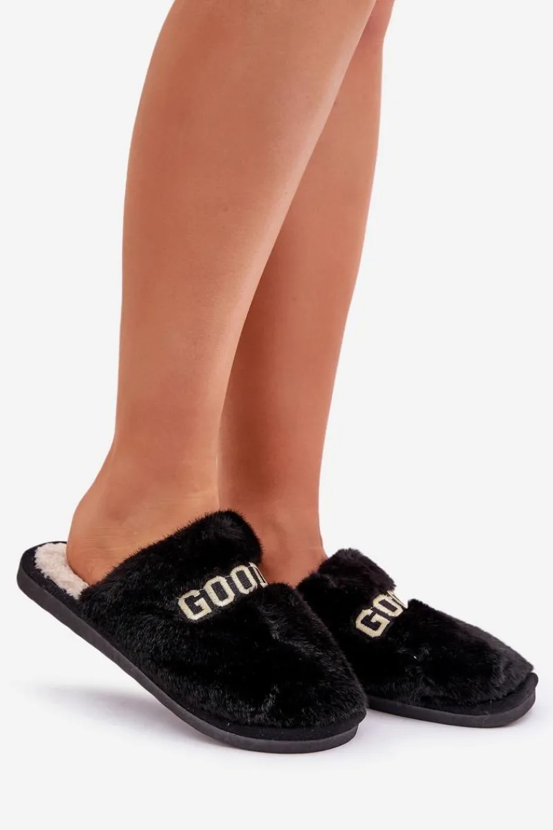 Kapcie damskie wykonane z miękkiego futerka, które zapewnia wyjątkowy komfort i ciepło. Model ozdobiony stylowym napisem, który dodaje nowoczesnego charakteru. Idealne na chłodne dni, doskonale sprawdzą się jako wygodne obuwie domowe, łącząc funkcjonalność z modnym wyglądem. Przy wyborze rozmiaru prosimy kierować tabelą rozmiarów.