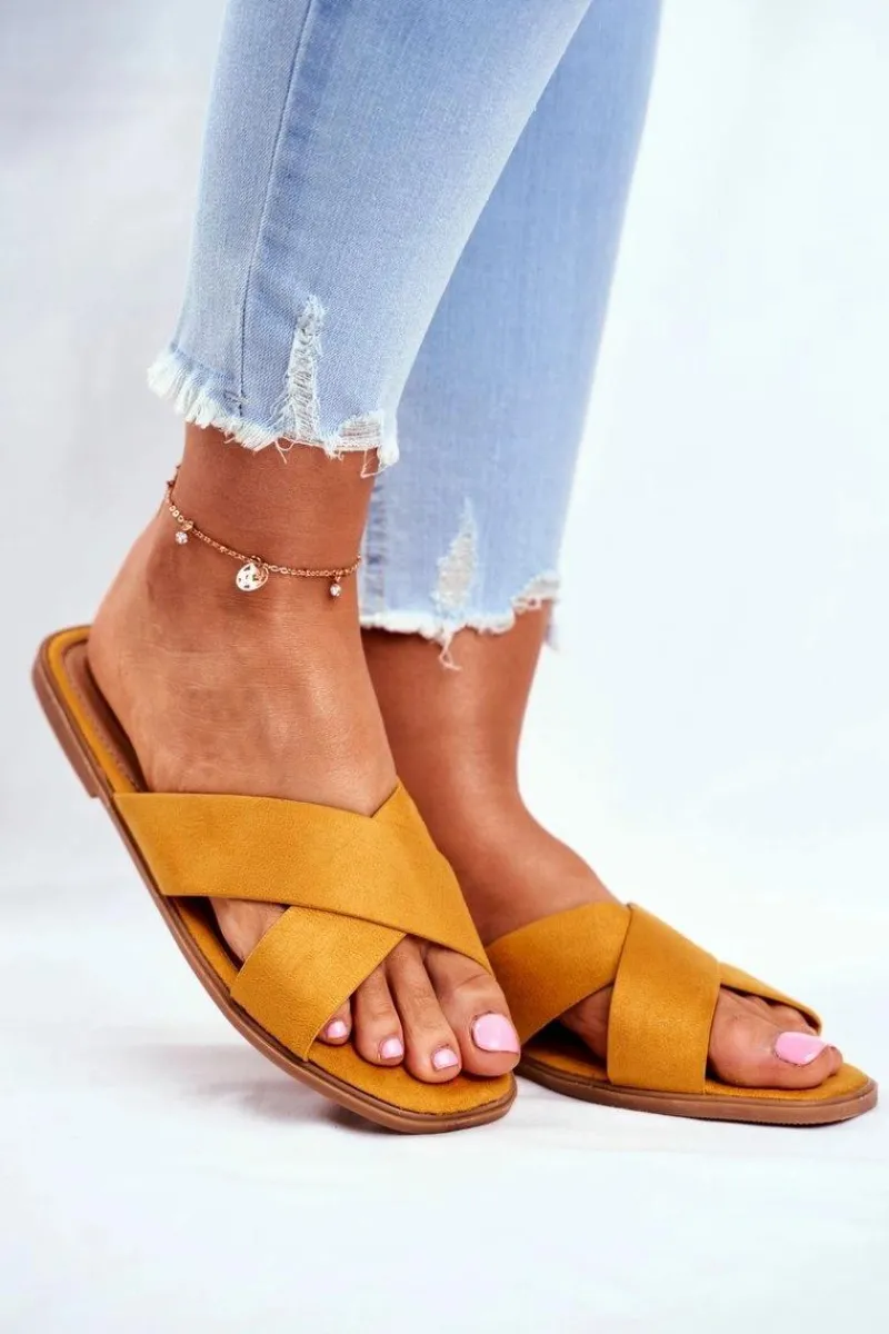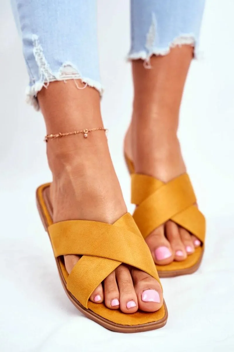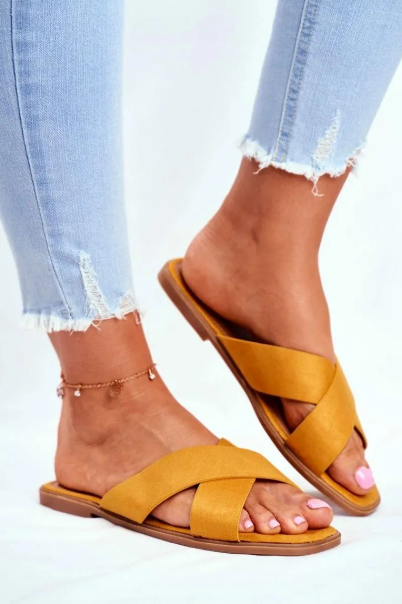 Discount Klapki Damskie Paski na Krzyż Żółte Philippines Damskie Klapki Damskie Klasyczne