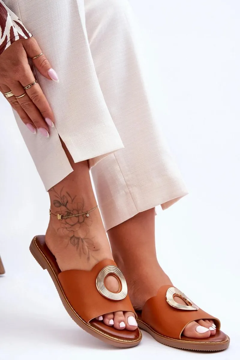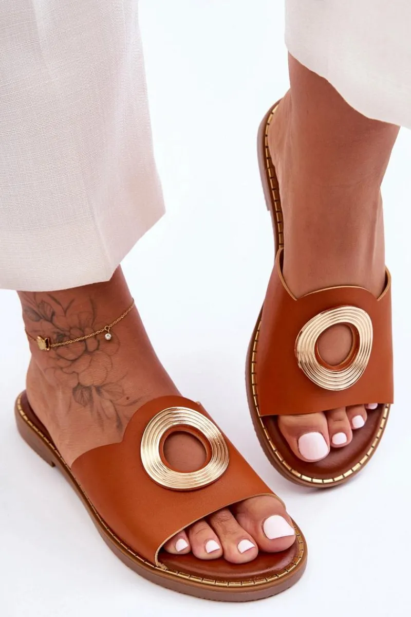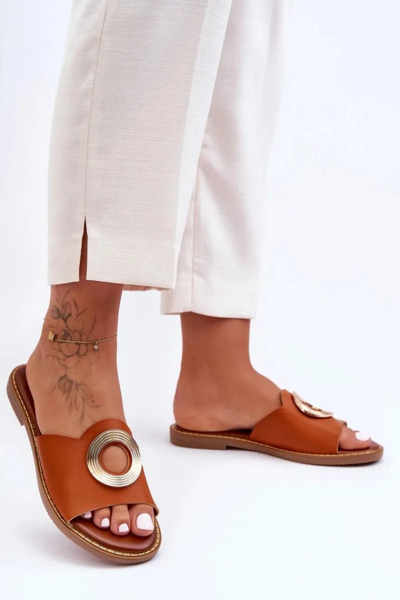 Klasyczne klapki damskie to MUST HAVE w upalne dni! Zostały wykonane z eko skóry. Model ten posiada okrągłe wycięcie i ozdobę z tłoczeniem. Klapki osadzono na płaskim obcasie i zdobionej podeszwie z tworzywa sztucznego. Miękka wkładka zapewni wygodne użytkowanie.Przy wyborze rozmiaru prosimy sugerować się tabelą rozmiarów.