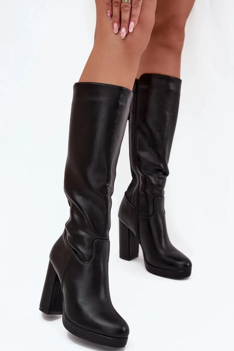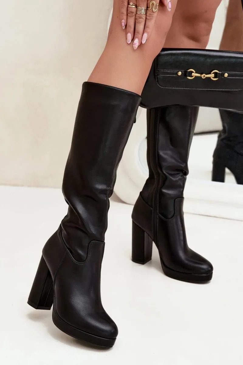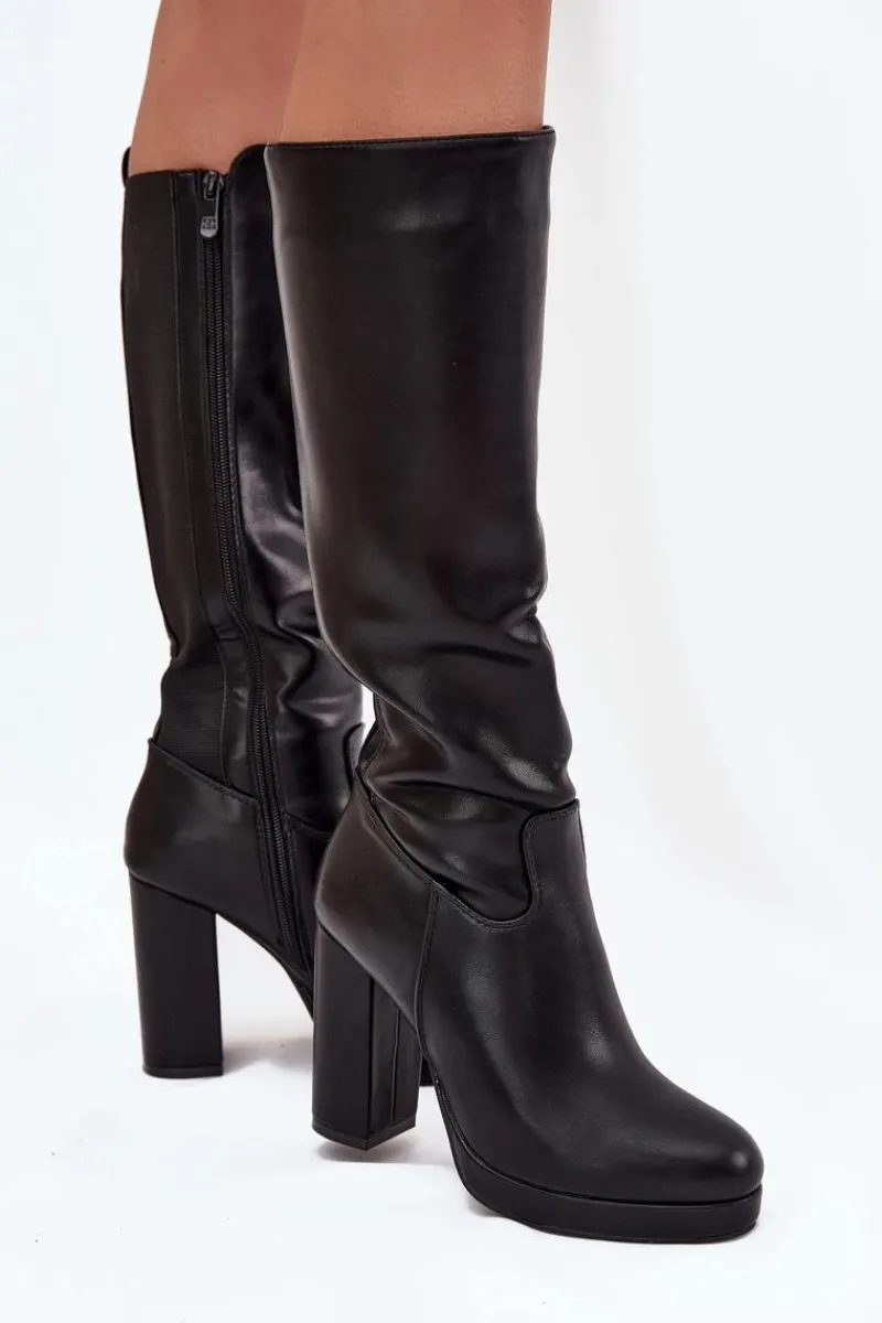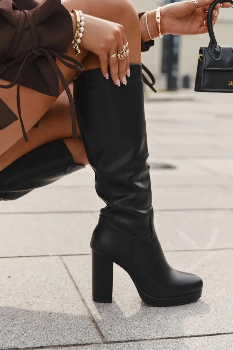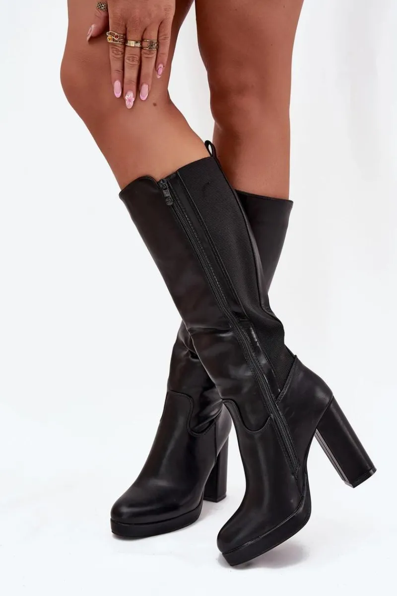 Eleganckie damskie kozaki z gładkiej eko skóry, zapinane na zamek, to połączenie klasyki z nowoczesnym stylem. Zaokrąglone noski zapewniają wygodę, a obcas w formie słupka dodaje stabilności. Model ten posiada elastyczną wstawkę. Doskonałe do sukienek i spódnic, te kozaki stanowią idealne uzupełnienie eleganckich stylizacji, łącząc komfort z ponadczasową elegancją. Przy wyborze rozmiaru prosimy sugerować się tabelą rozmiarów.