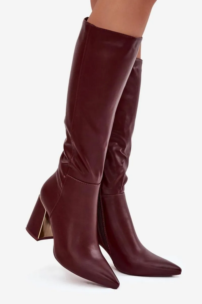 Kozaki na słupku ze złotym akcentem to elegancka propozycja dla kobiet. Model ze szpiczastymi noskami i cholewką sięgającą przed kolano podkreśla kobiecą sylwetkę, a zamek zapewnia łatwe zakładanie i idealne dopasowanie do nogi. Świetnie sprawdzą się w stylizacjach z sukienkami i spódnicami. Przy wyborze rozmiaru prosimy sugerować się tabelą rozmiarów.