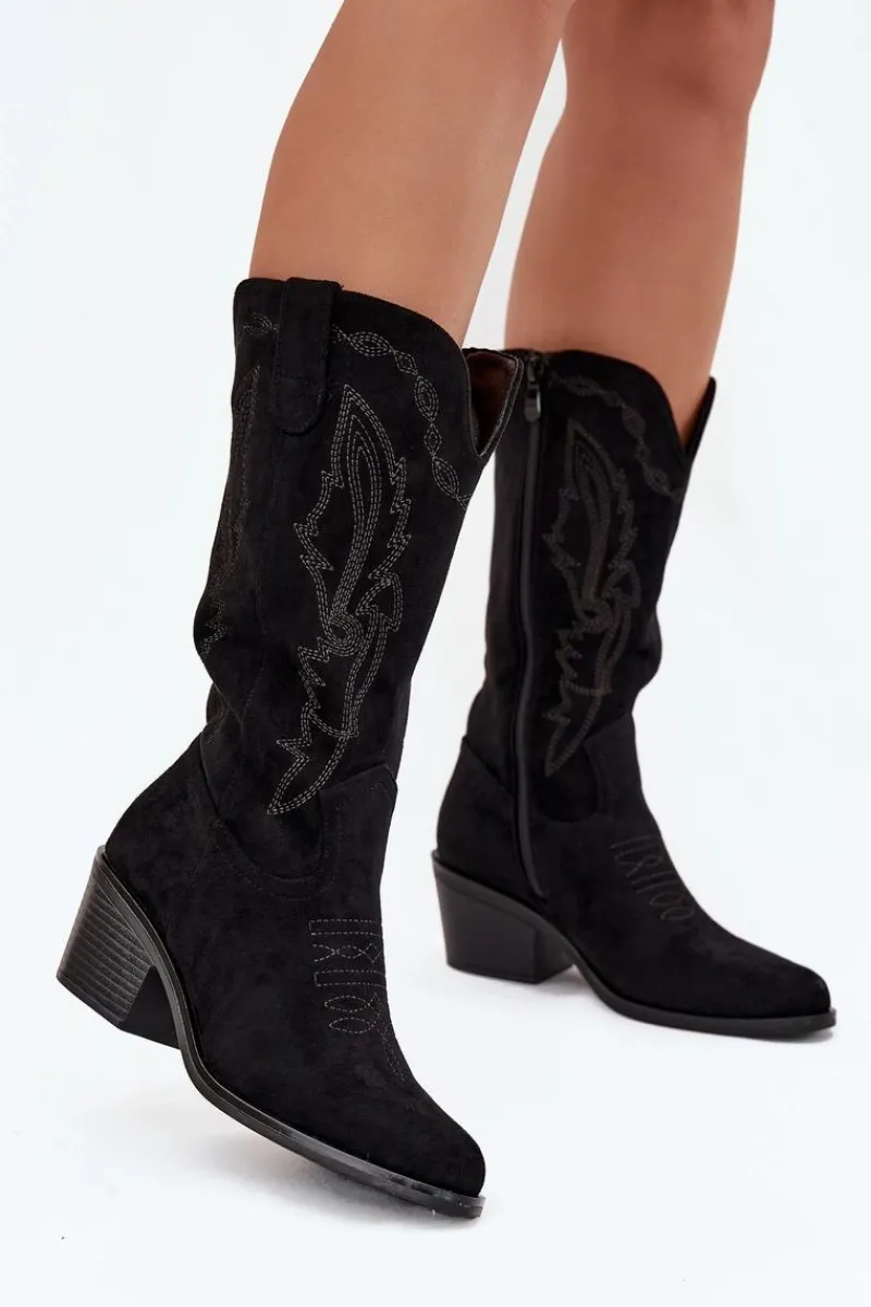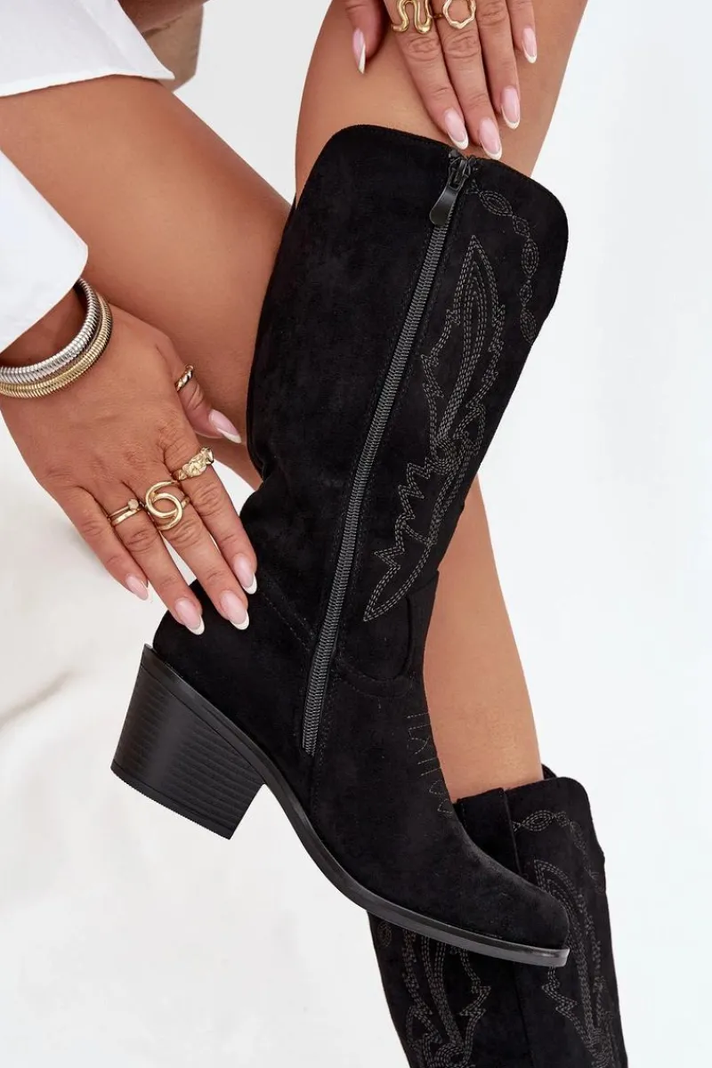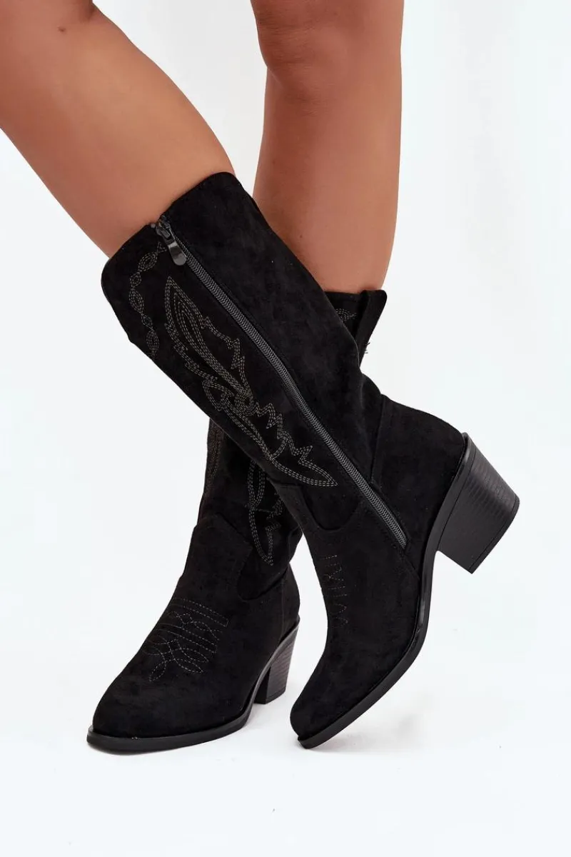 Discount Kozaki Kowbojki Damskie Na Obcasie Ocieplane Vinceza 16508 Czarne Damskie Kozaki Na Obcasie|Kozaki Zamszowe