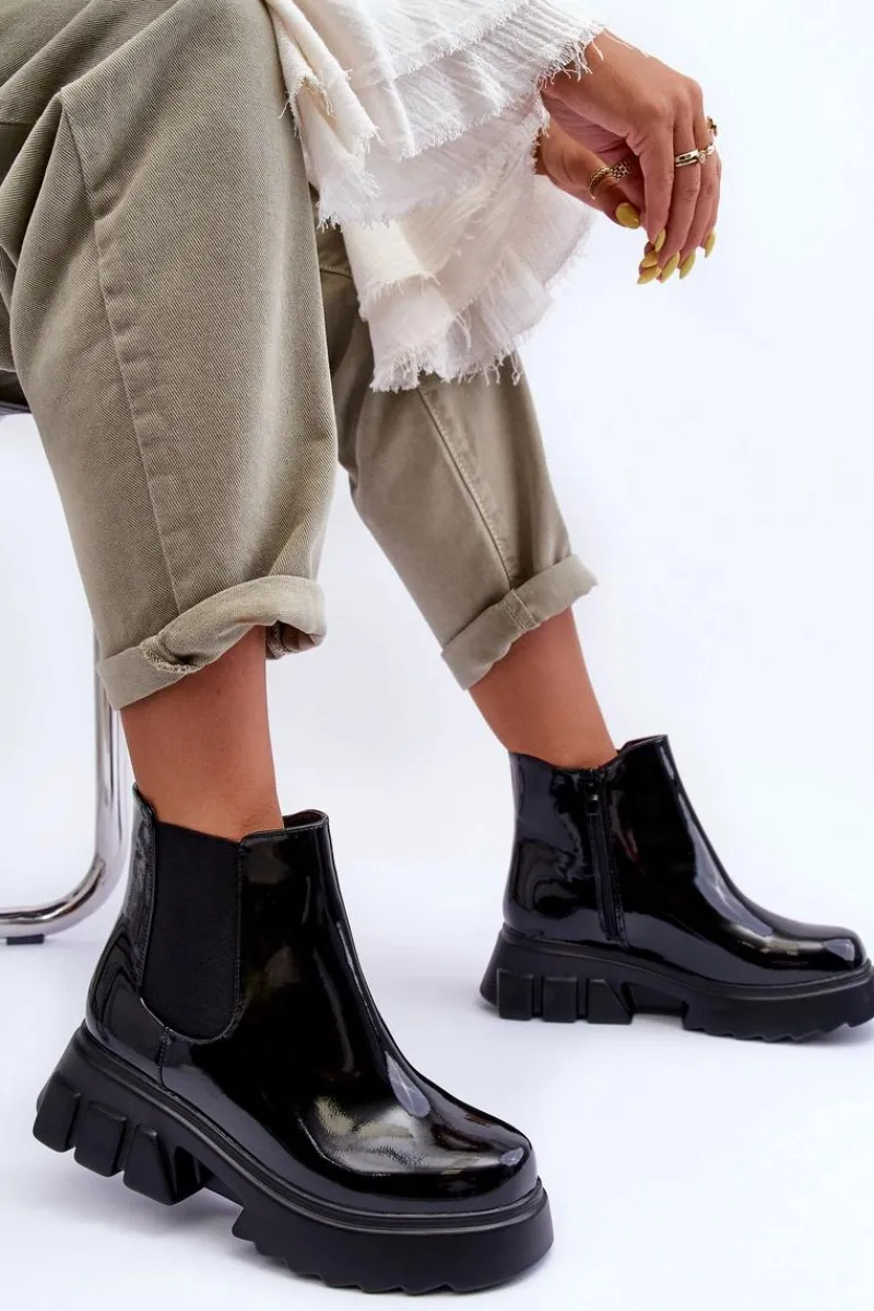Modne damskie sztyblety zostały wykonane ze skóry ekologicznej i osadzone na masywnej platformie. Model ten posiada lekko zaokrąglony nosek. Płaski obcas oraz platforma zapewnią stabilność na każdym kroku. Koniecznie powinnaś mieć te sztyblety w swojej szafie! Przy wyborze rozmiaru prosimy sugerować się tabelą rozmiarów.