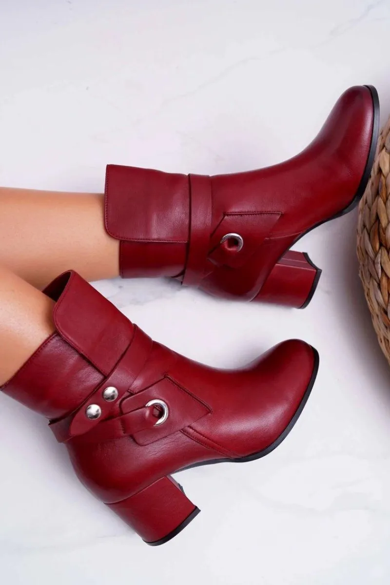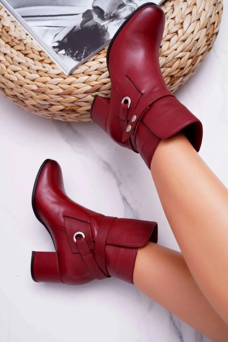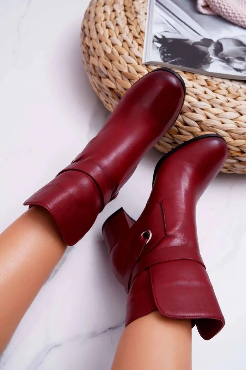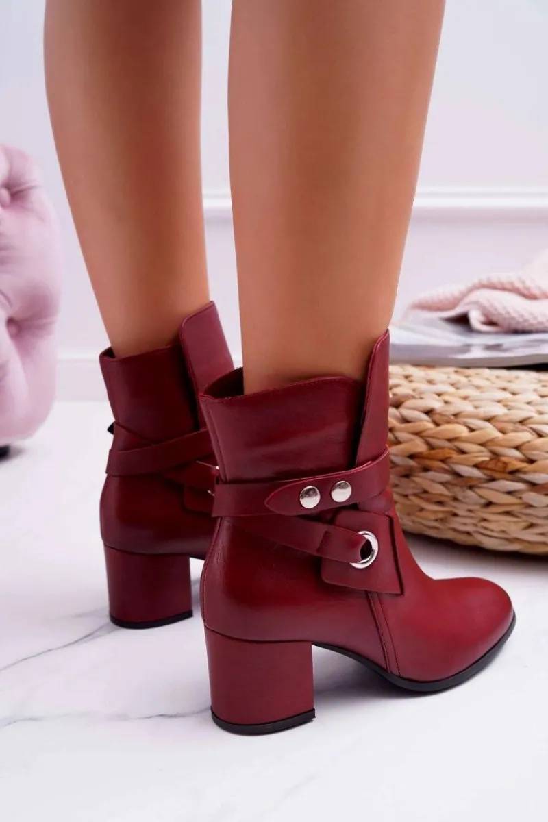 Discount Laura Messi Botki Damskie Skórzane Wsuwane Bordowe 1820
