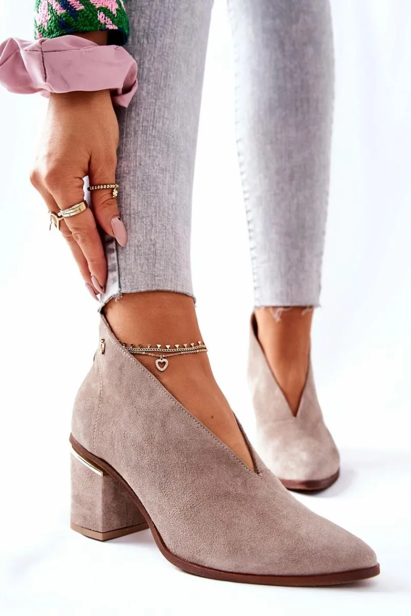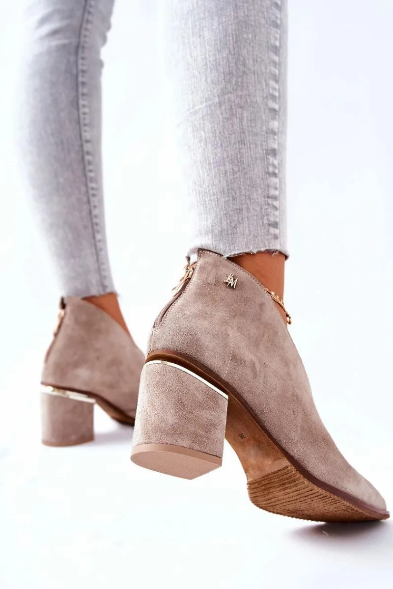 Eleganckie botki dodadzą Twoim stylizacjom klasy i szyku. Wycięta cholewka pięknie wyeksponuje nogi. Stabilny obcas posiada ozdobny element. Nosek w szpic. Z tyłu na botkach znajduje się suwak. Buty na zewnątrz oraz w środku sa wykonane z naturalnej skóry. Nie przegap okazji! Pora na nowe buty! Przy wyborze rozmiaru prosimy sugerować się tabelą rozmiarów.