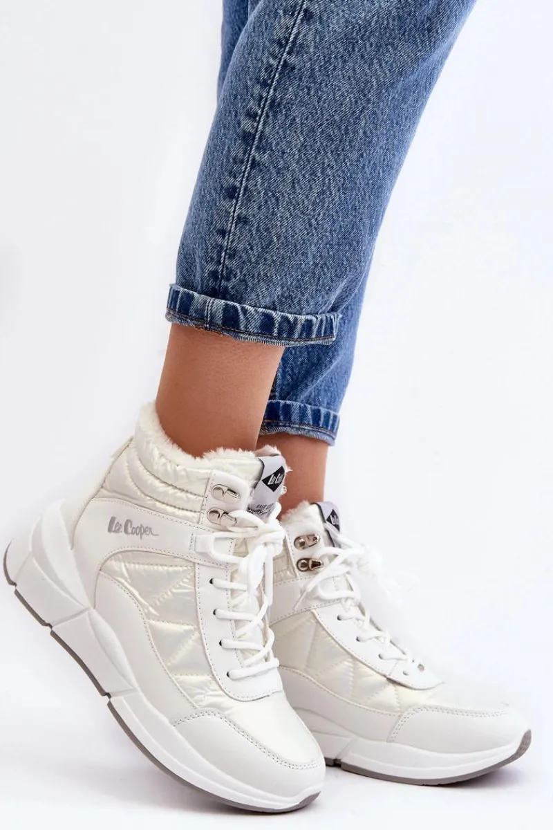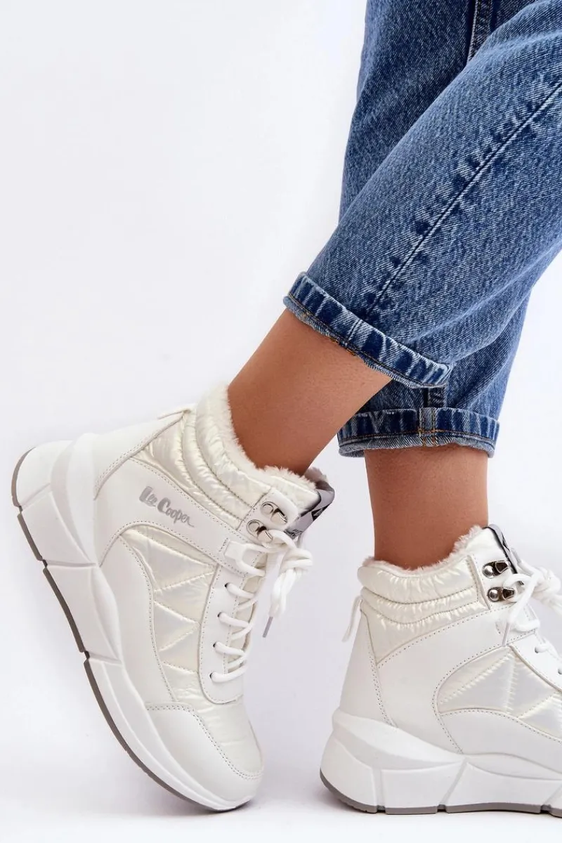 Klasyczne botki damskie marki Lee Cooper zostały wykonane z połączenia eko skóry i materiału tekstylnego. Osadzone na platformie z gumowego tworzywa. Model z cholewką za kostkę. Dodatkowo zapiętek jest usztywniany. Botki posiadają solidne sznurowanie umożliwiające odpowiednie dopasowanie do tęgości nogi. Przy wyborze rozmiaru prosimy sugerować się tabelą rozmiarów.