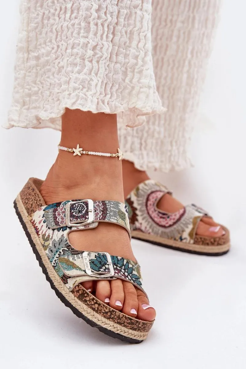 Damskie klapki marki Lee Cooper, osadzone na korkowej platformie z plecionką, to stylowa opcja na ciepłe dni. Model wyróżnia się dwoma regulowanymi paskami z klamrami z przodu, które zapewniają idealne dopasowanie do stopy. Profilowana wkładka gwarantuje komfort przez cały dzień, dbając o odpowiednią amortyzację. Te klapki to doskonały wybór do letnich stylizacji! Przy wyborze rozmiaru prosimy sugerować się tabelą rozmiarów.