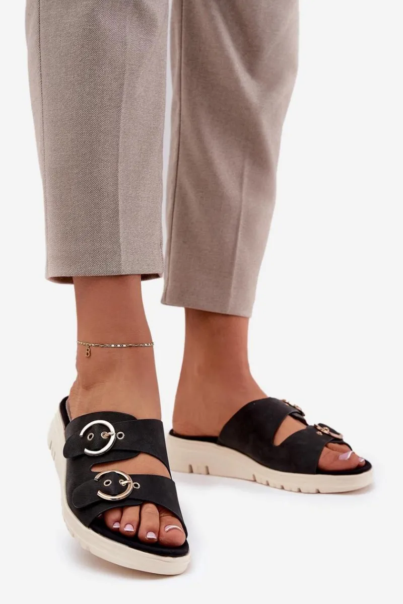 Lekkie i wygodne klapki z materiału tekstylnego to doskonały wybór na ciepłe dni. Osadzone na koturnie, zapewniają stabilność i komfort, a skórzana, miękka wkładka dba o wygodę przez cały dzień. Z przodu znajdują się regulowane paski z klamrami, umożliwiające idealne dopasowanie do stopy. Te klapki świetnie sprawdzą się w letnich stylizacjach, łącząc funkcjonalność z modnym wyglądem. Przy wyborze rozmiaru prosimy kierować się tabelą rozmiarów.