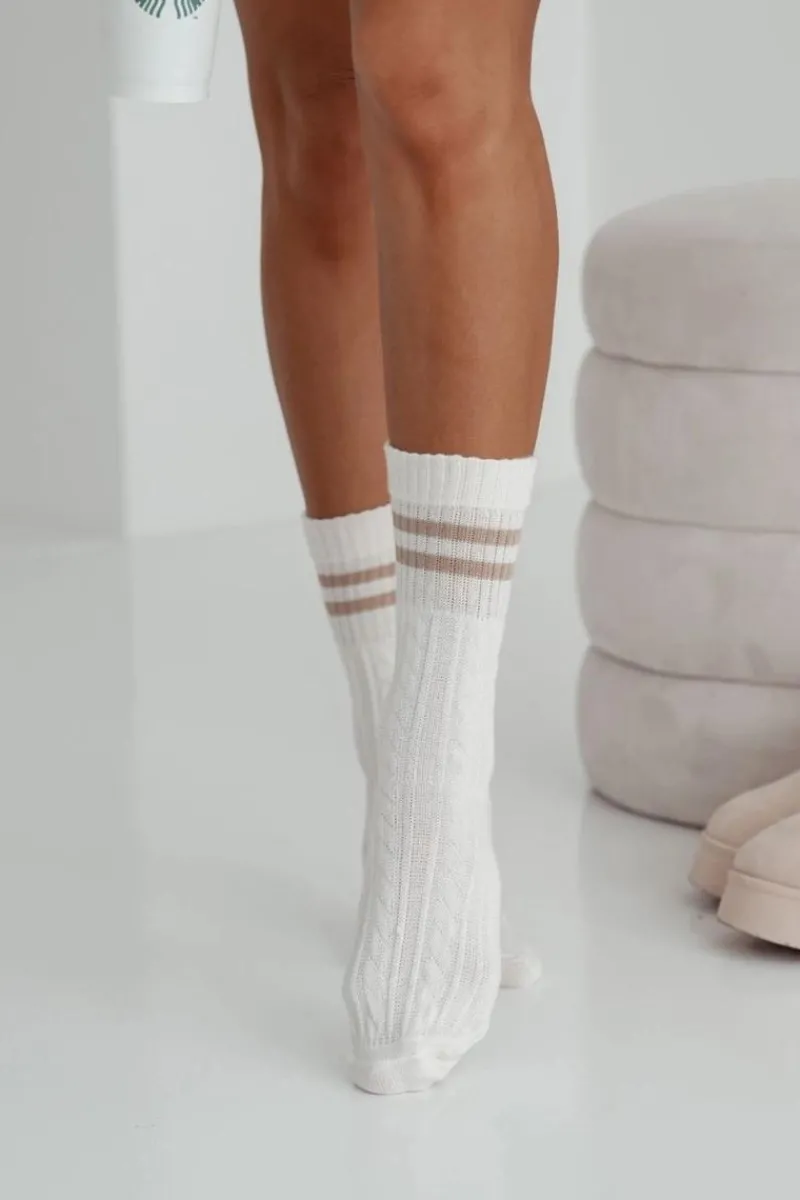 Discount Milena Skarpetki Damskie Warkocz Z Paskami Ecru