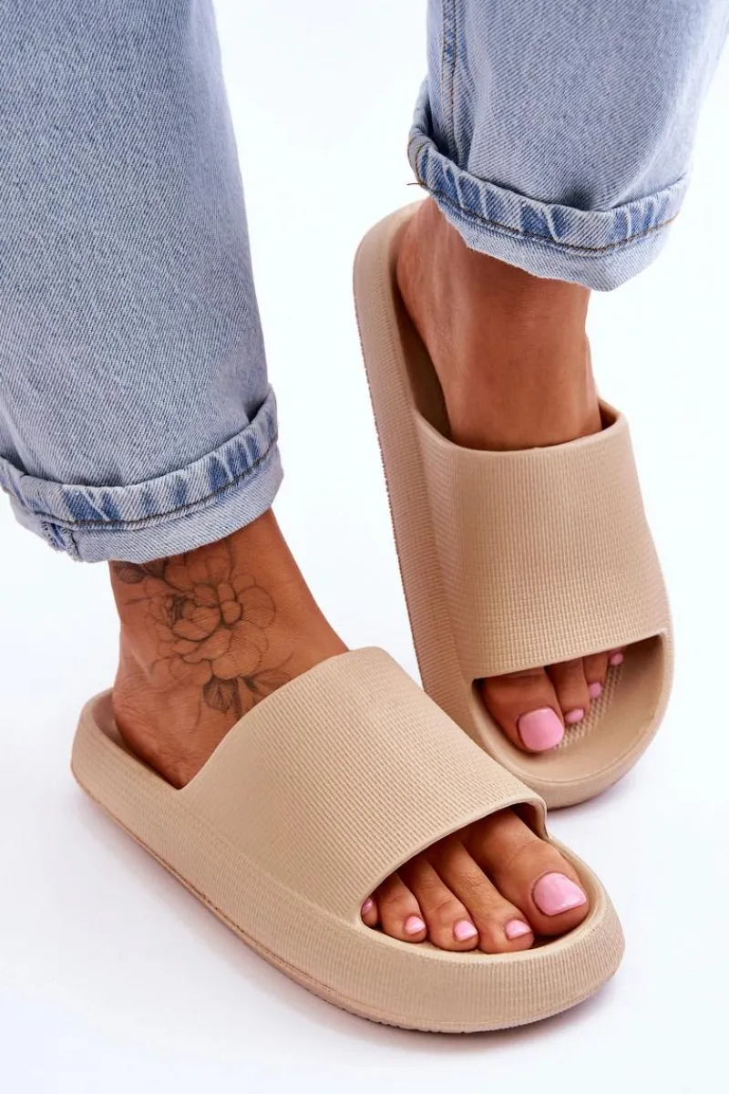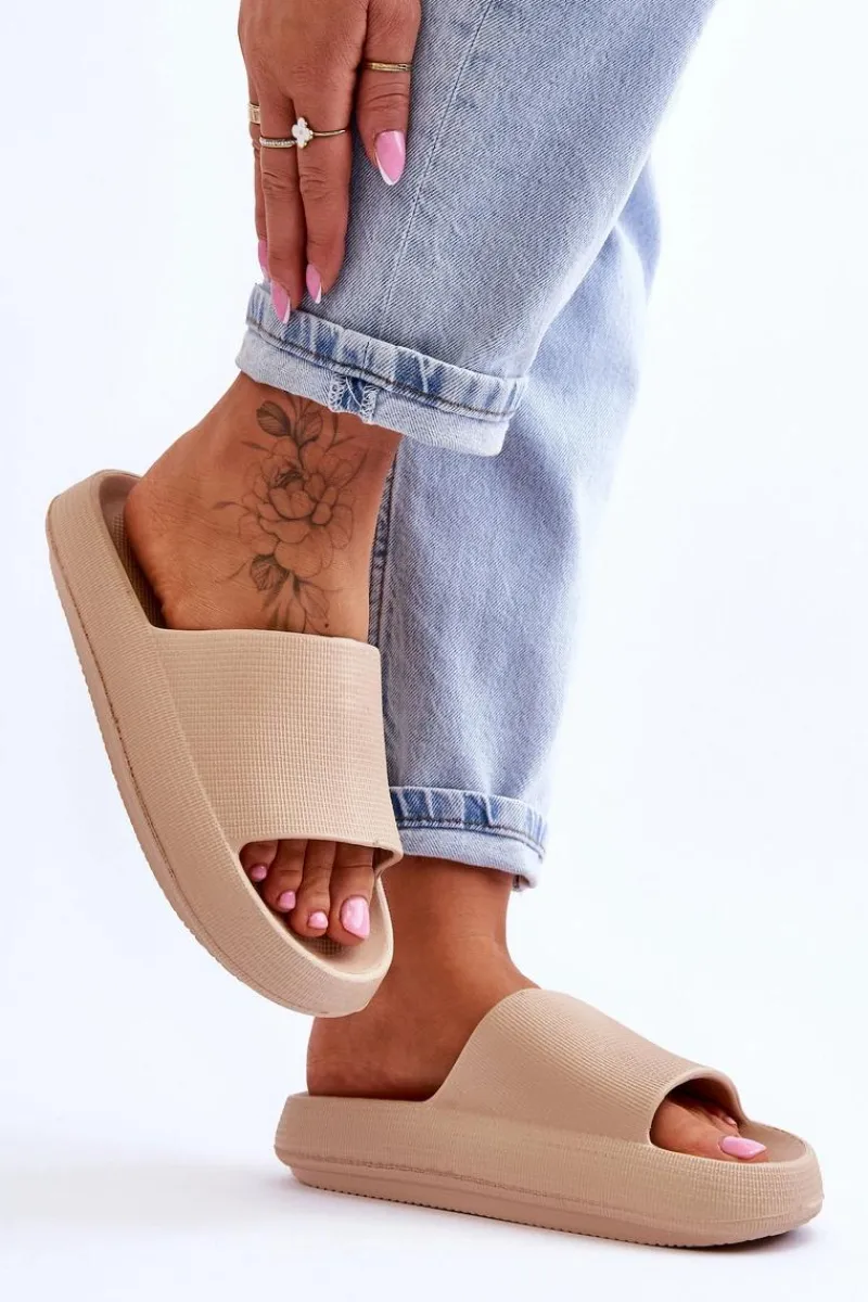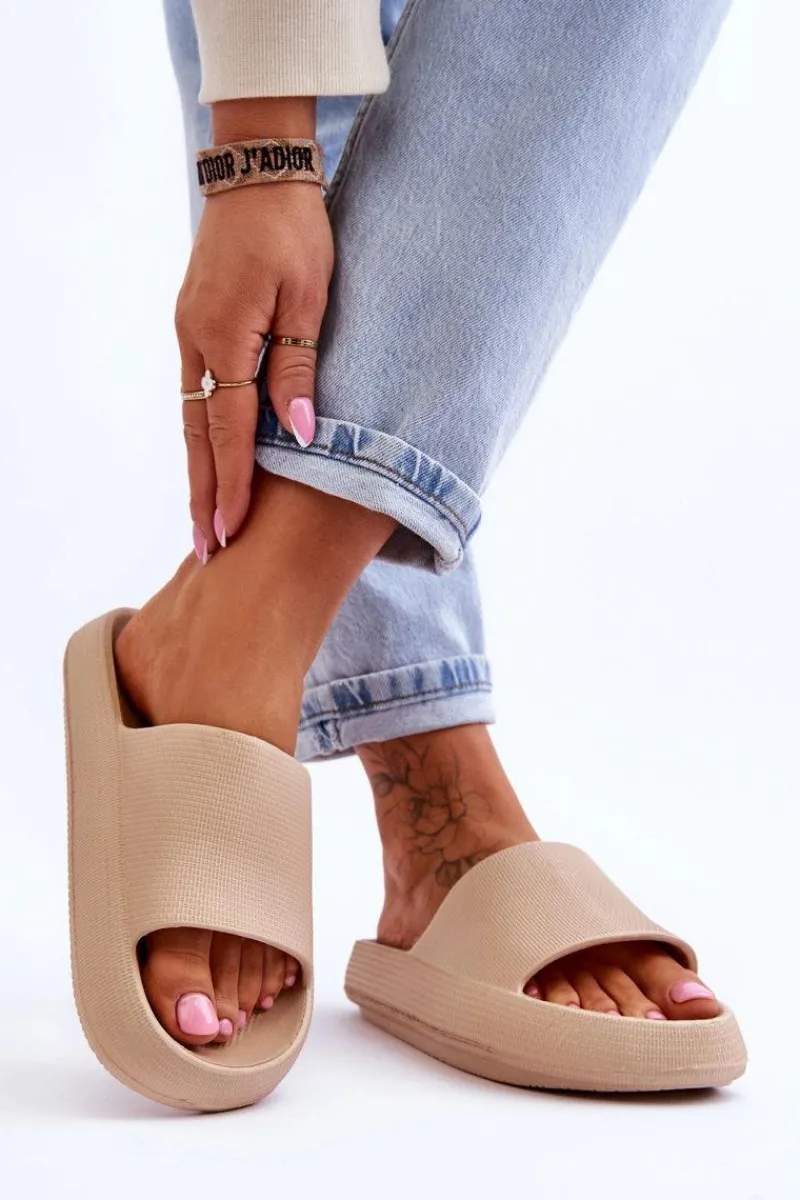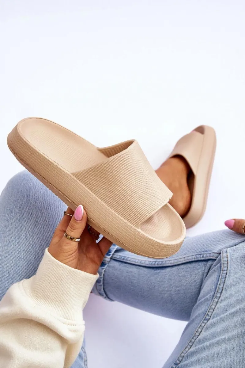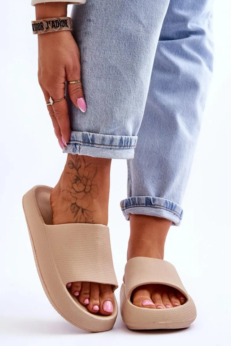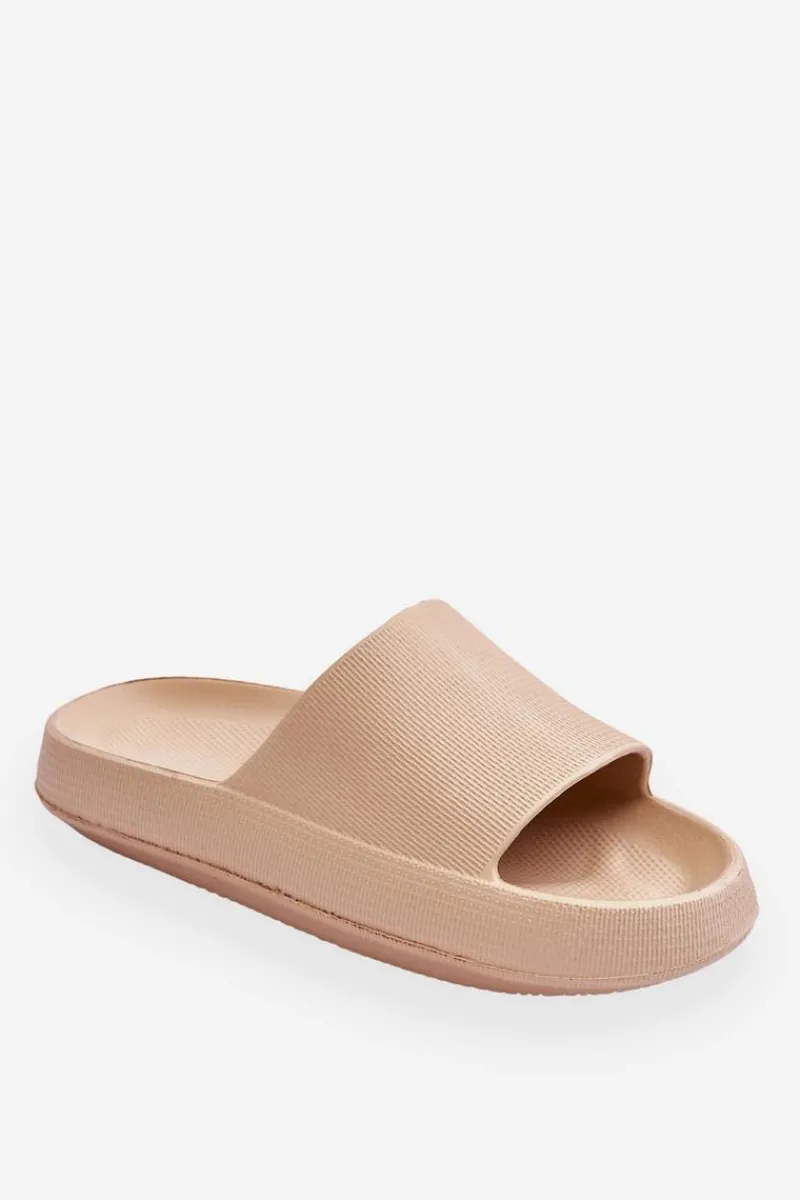 Discount Modne Lekkie Klapki Na Masywnej Podeszwie Beżowe Rebel Damskie Klapki Basenowe