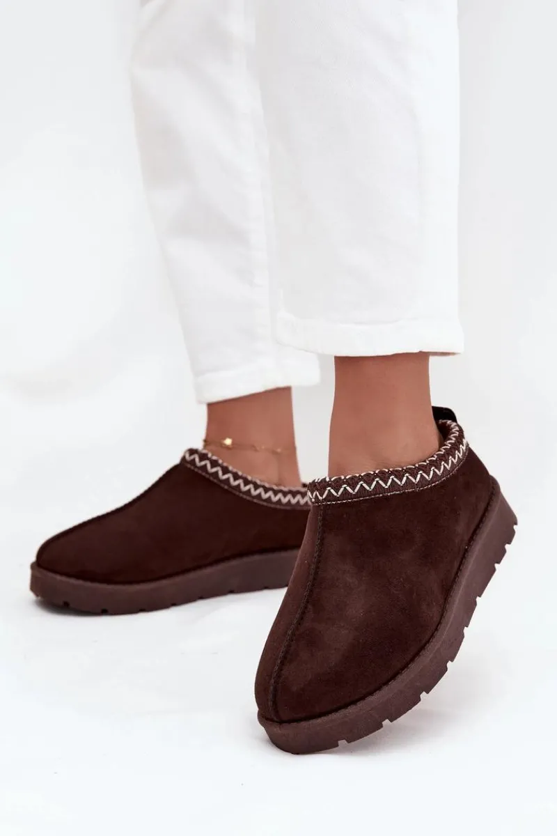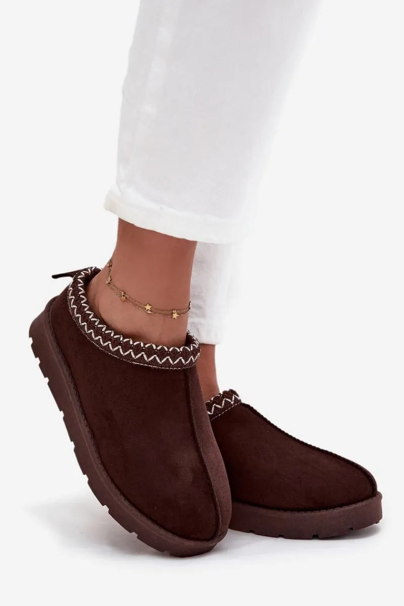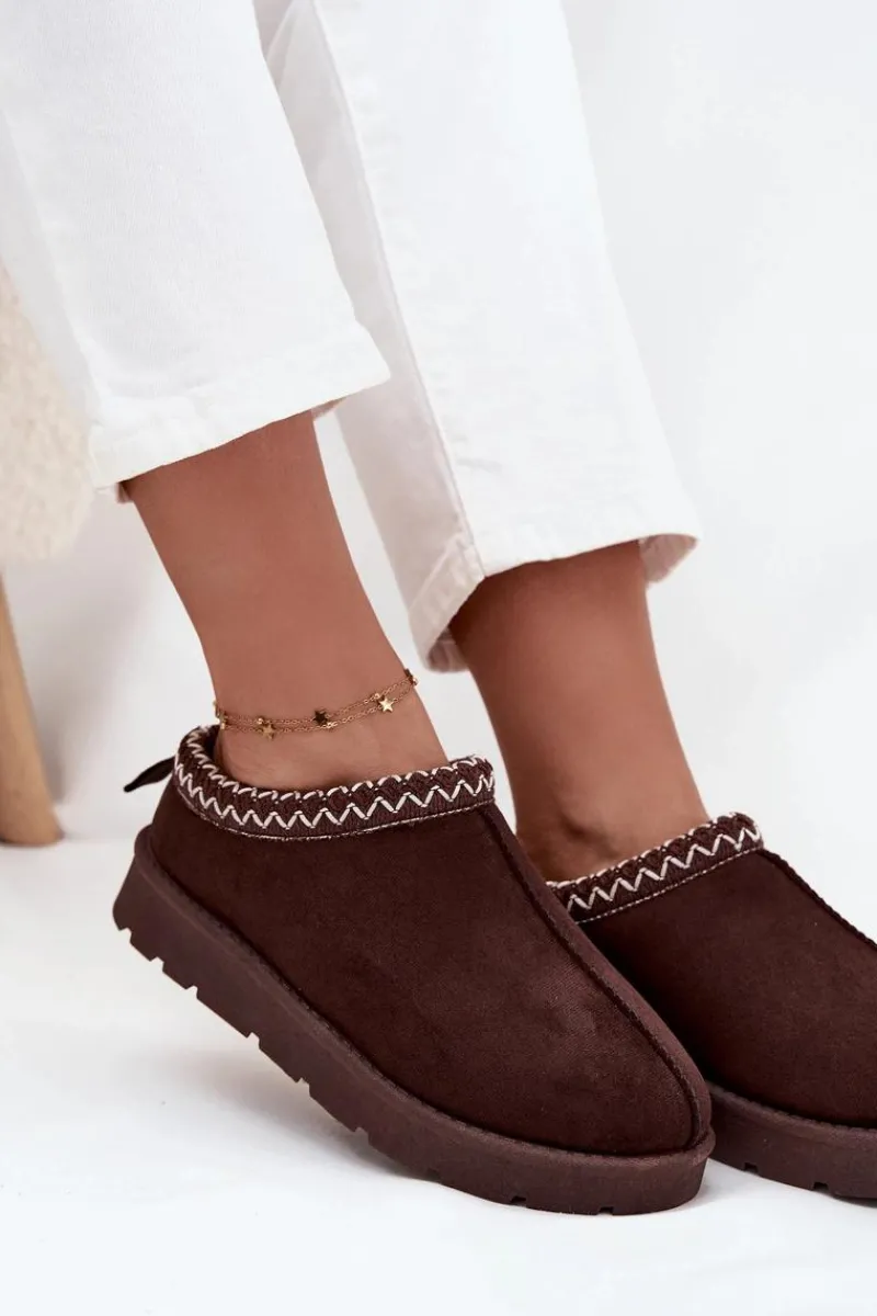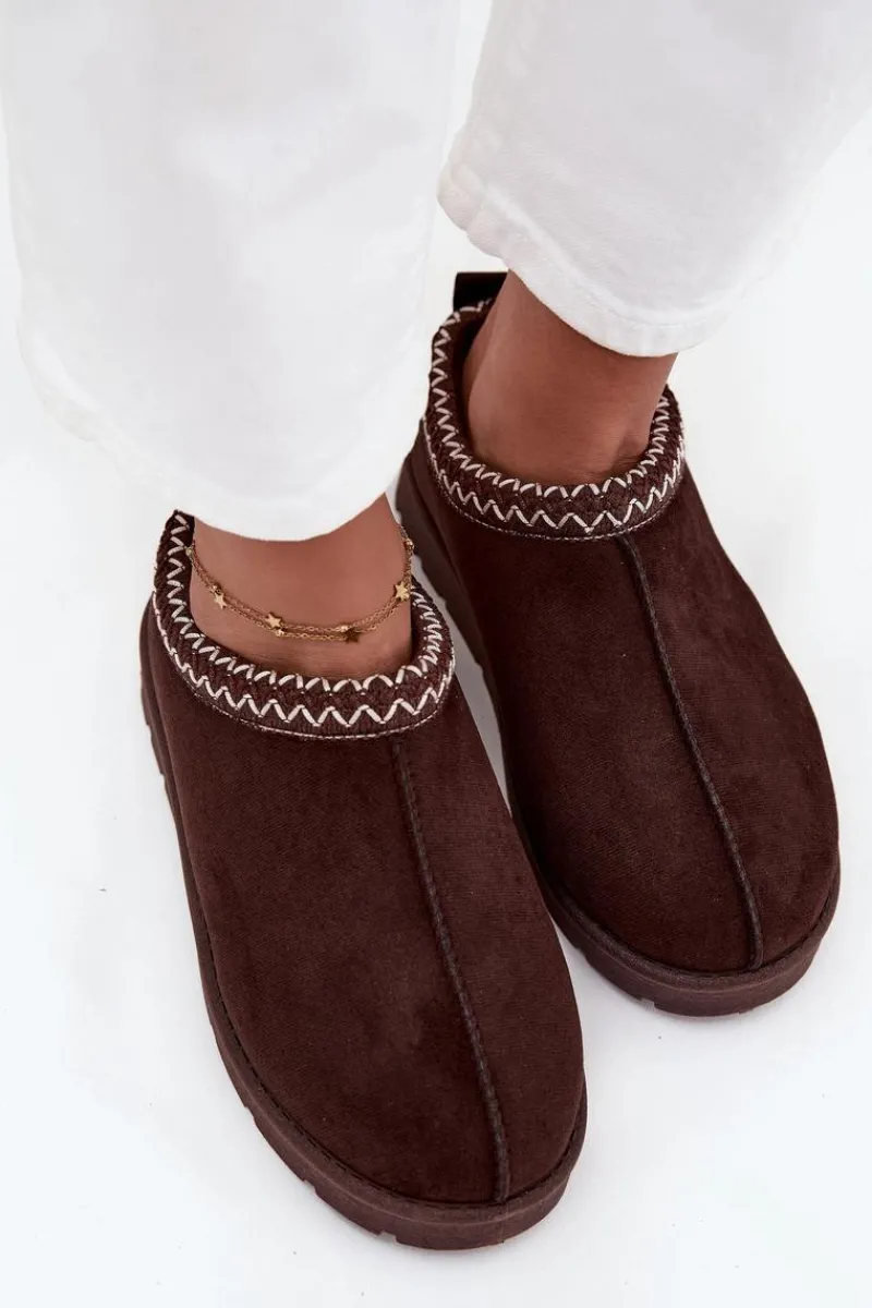 Niskie śniegowce damskie wykonane z eko zamszu to praktyczna i stylowa propozycja na zimę. Osadzone na delikatnej platformie zapewniają wygodę i izolację od chłodnego podłoża, a miękkie futerko wewnątrz gwarantuje ciepło i komfort w mroźne dni. Uwagę przyciąga ozdobny haft na górze cholewki, który dodaje całości modnego i niepowtarzalnego charakteru. To śniegowce idealne na codzienne, zimowe wyjścia. Przy wyborze rozmiaru prosimy kierować tabelą rozmiarów.