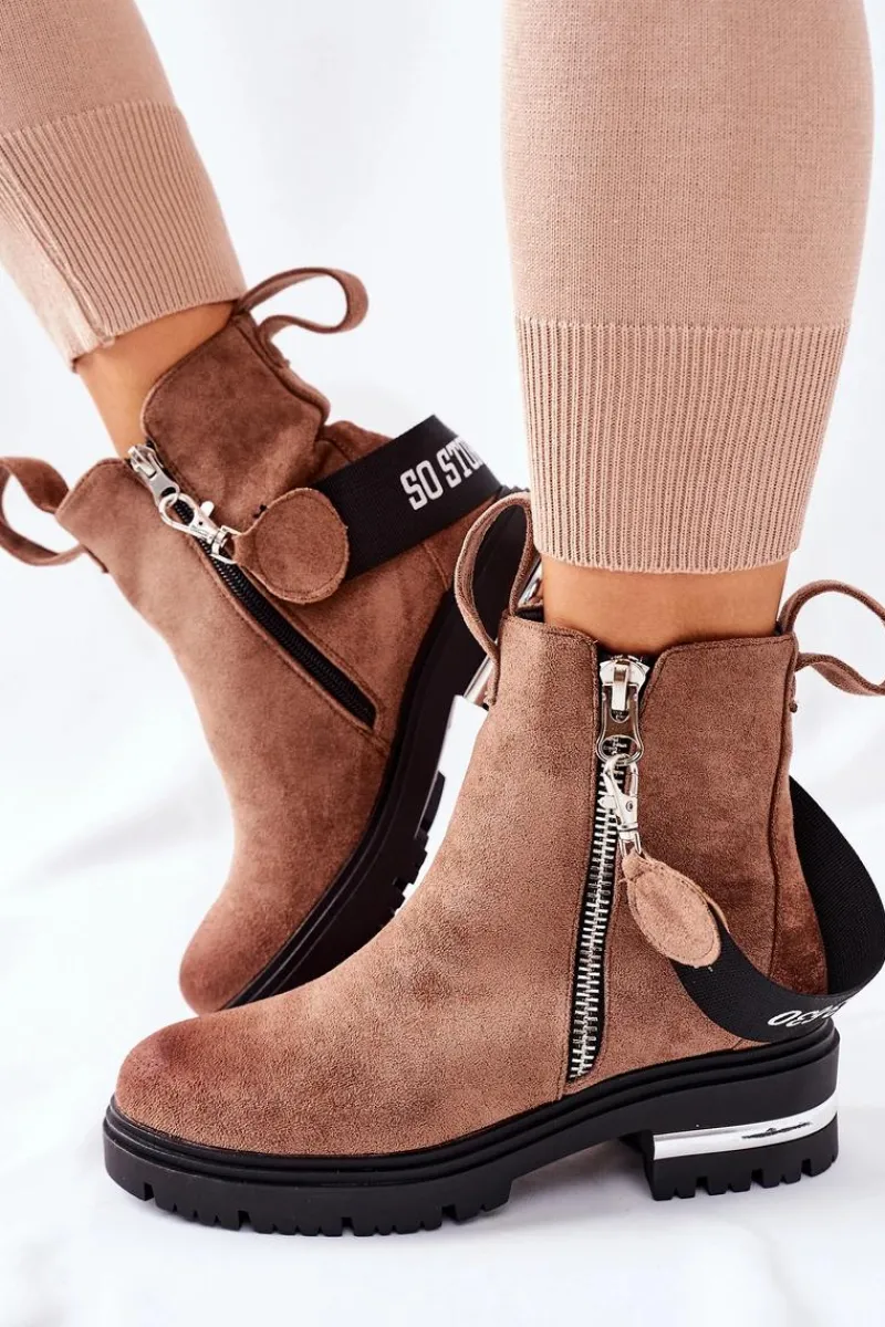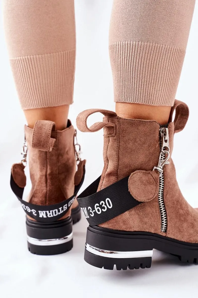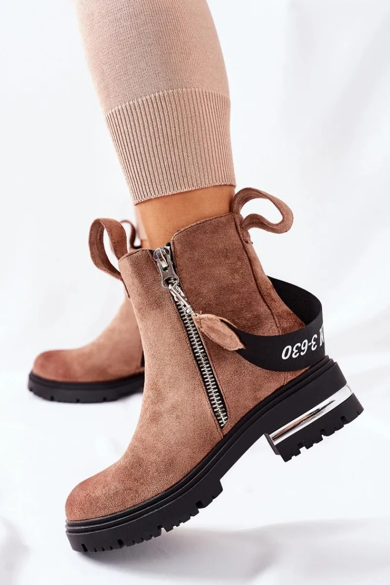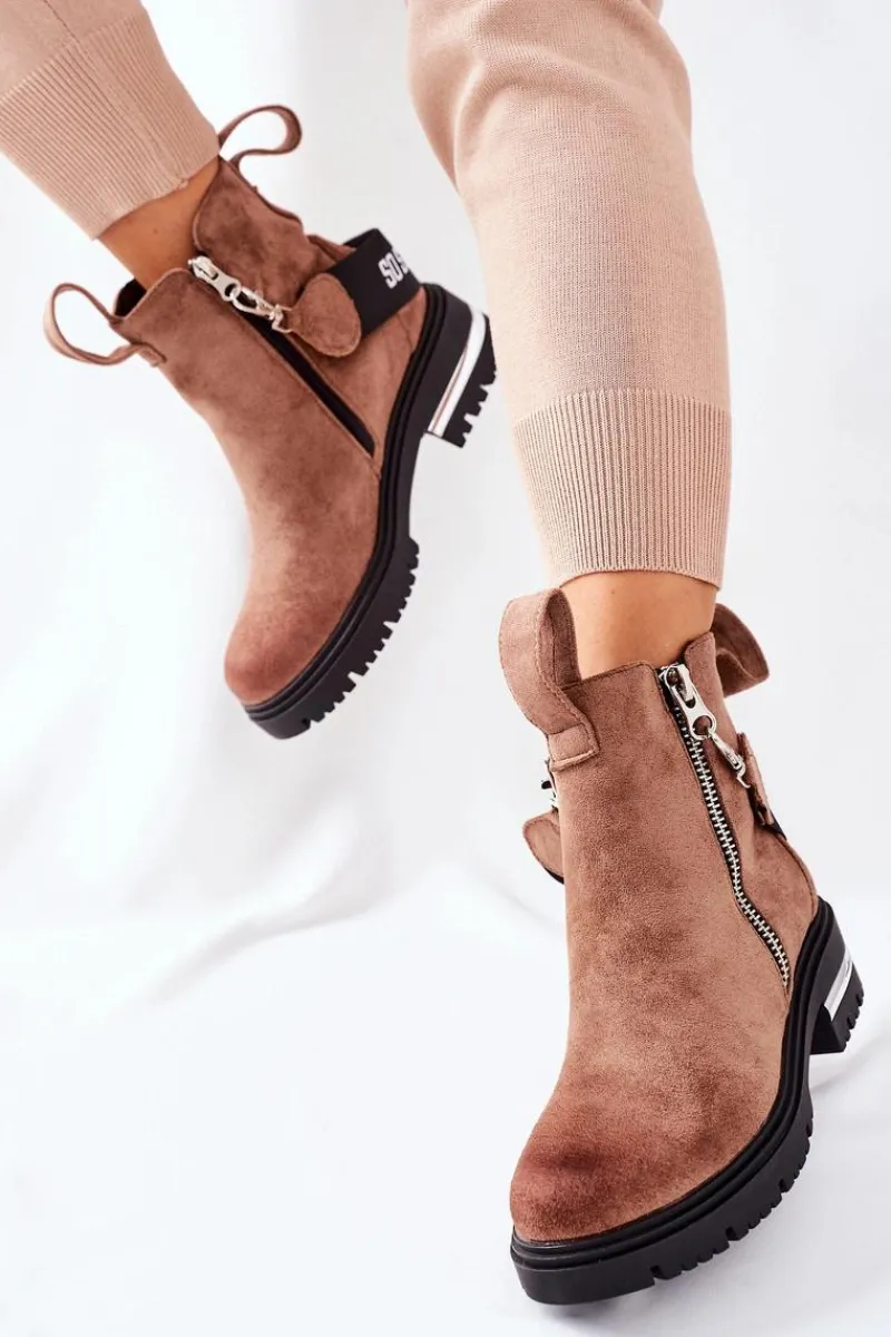 Botki damskie wykonane z eko zamszu. Wnętrze ocieplone jest miłym w dotyku kocem obuwniczym. Przy wyborze rozmiaru prosimy sugerować się tabelą rozmiarów.