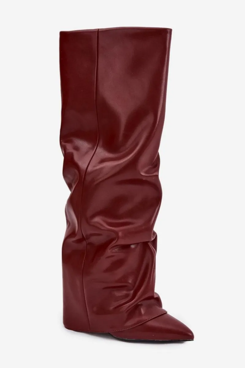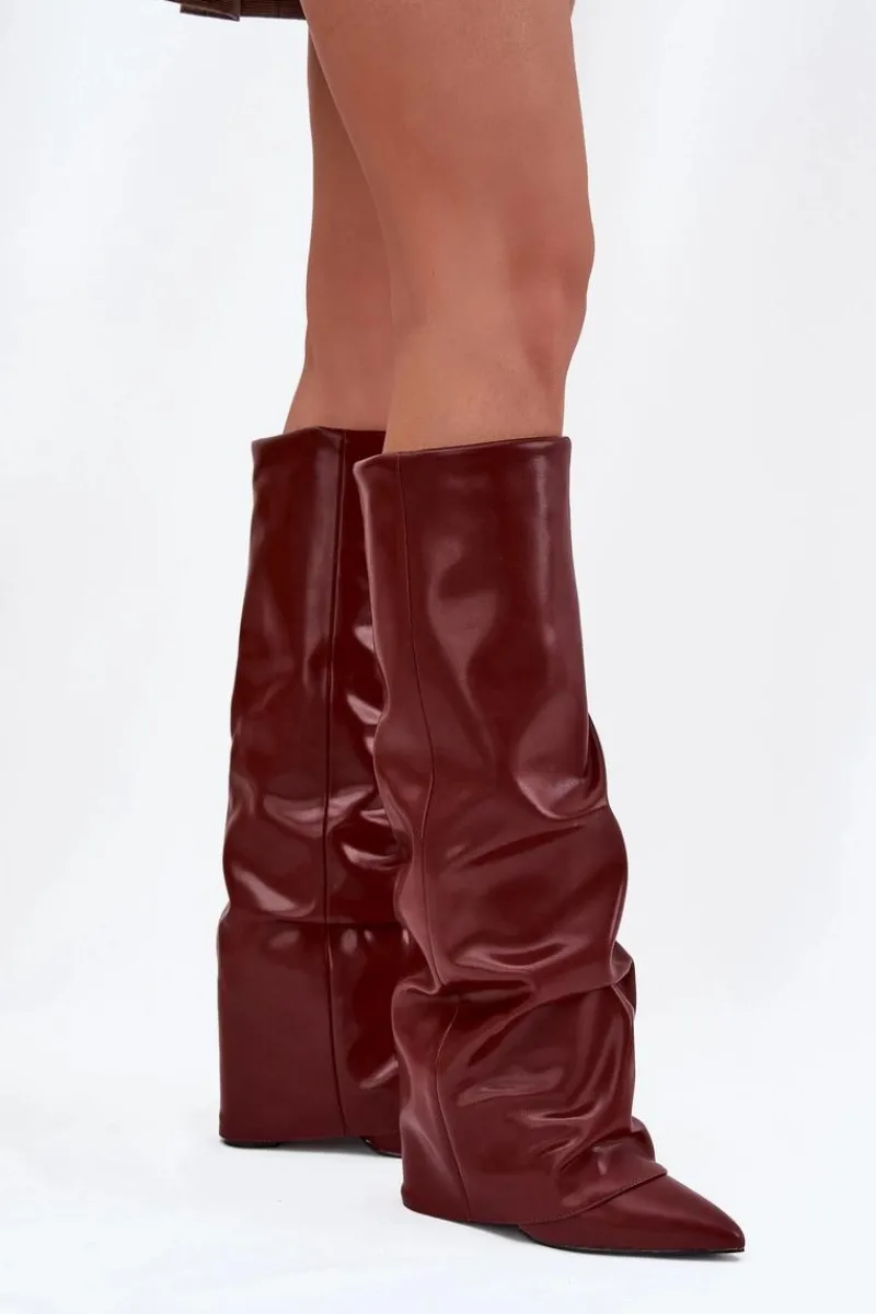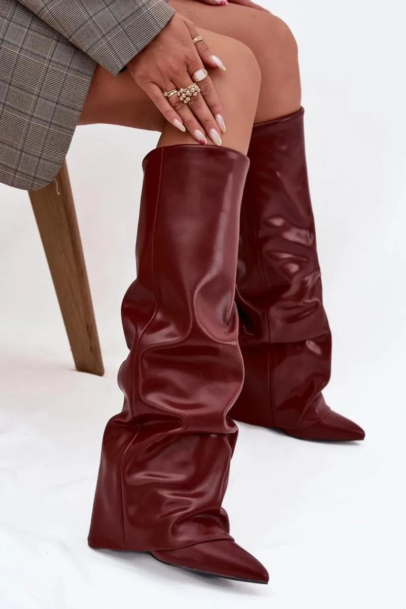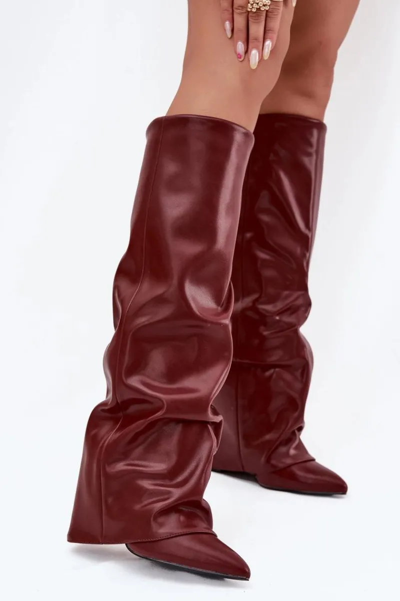 Kozaki damskie z wywiniętą cholewką to prawdziwy must-have na nadchodzący sezon jesienno-zimowy! Wsuwane i osadzone na stabilnym obcasie typu słupek, gwarantują wygodę i pewny krok. Ocieplenie zapewnia komfort w chłodniejsze dni, a wywinięta cholewka, nachodząca na obcas, dodaje im oryginalnego charakteru. Szpiczaste noski podkreślają kobiecy styl, dzięki czemu kozaki świetnie sprawdzą się w efektownych, zimowych stylizacjach. Przy wyborze rozmiaru prosimy sugerować się tabelą rozmiarów.