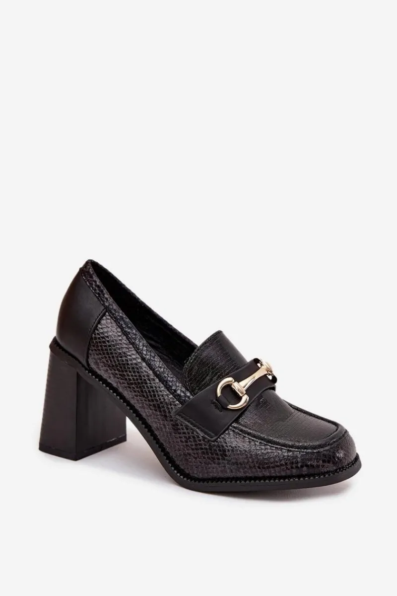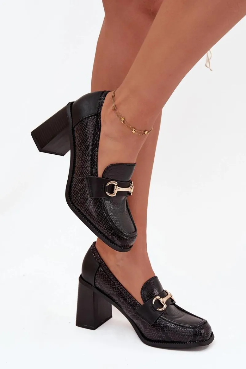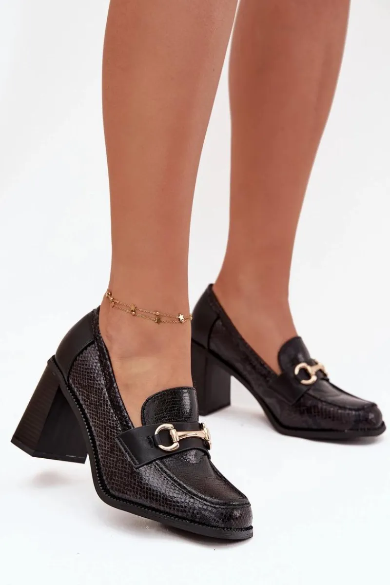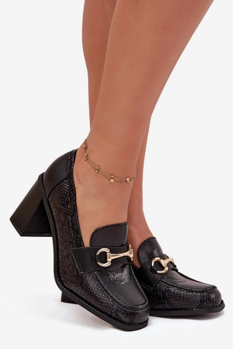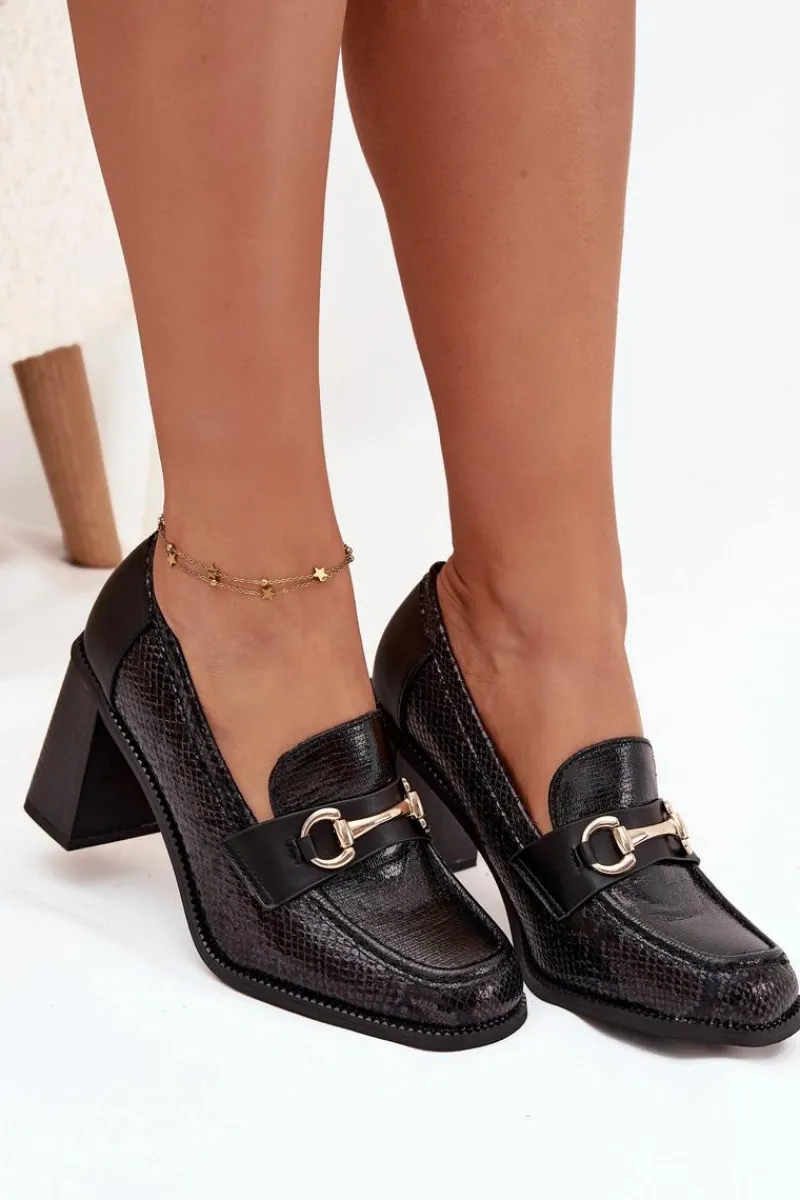 Półbuty damskie wykonane z eleganckiej eko skóry to stylowa propozycja na wiele okazji. Osadzone na stabilnym obcasie typu słupek gwarantują wygodę noszenia i jednocześnie dodają sylwetce lekkości. Klasyczne, zaokrąglone noski sprawiają, że buty prezentują się subtelnie i kobieco, a ozdobne tłoczenie nadaje im wyjątkowego charakteru. Uroku całości dodaje złoty detal, który stanowi elegancki akcent i podkreśla nowoczesny styl obuwia. To model, który świetnie sprawdzi się zarówno w codziennych zestawach, jak i w bardziej oficjalnych stylizacjach, łącząc komfort z ponadczasową elegancją.
