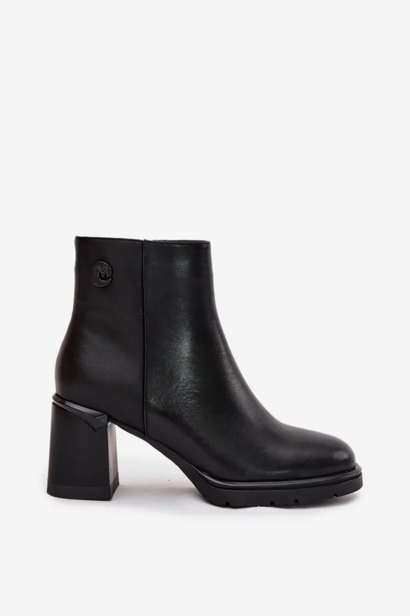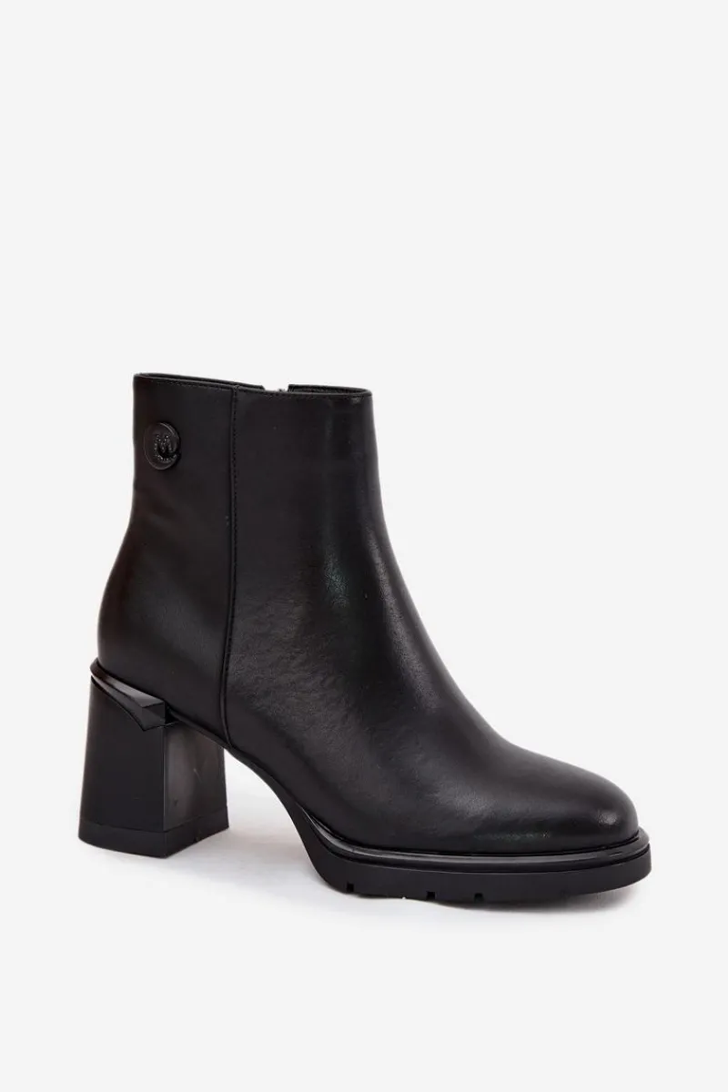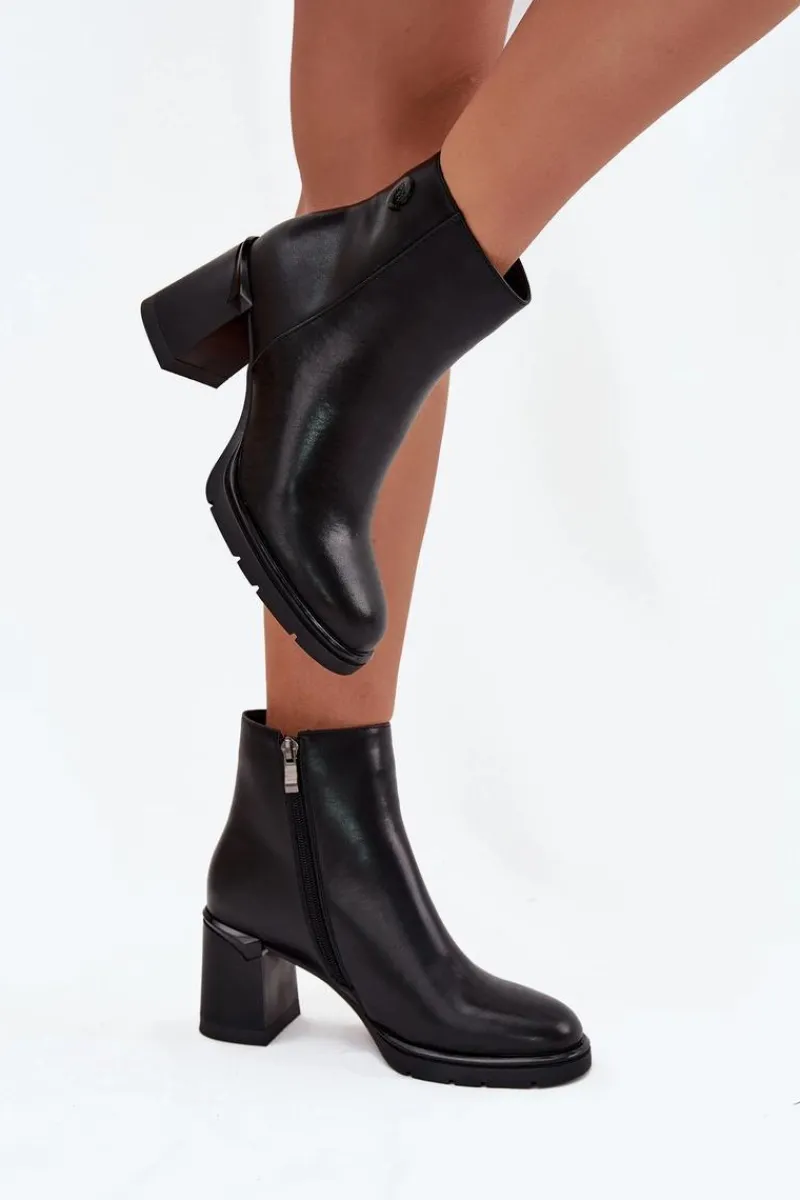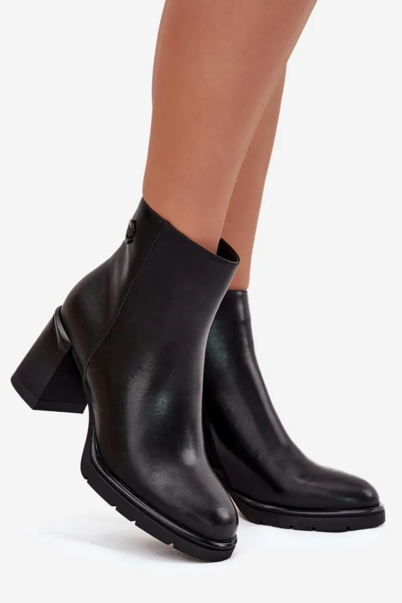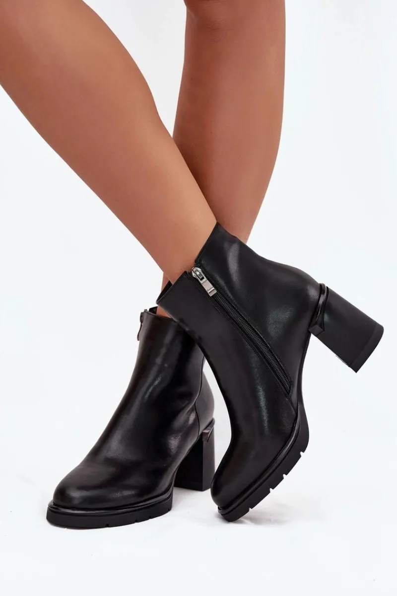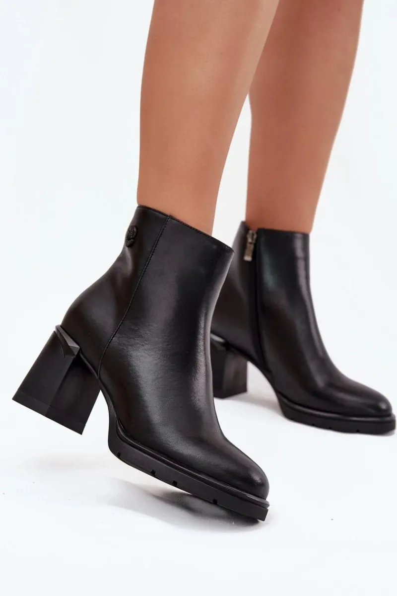Discount Skórzane Botki Damskie Na Słupku Czarne Julissa Damskie Botki Ocieplane|Botki Na Słupku