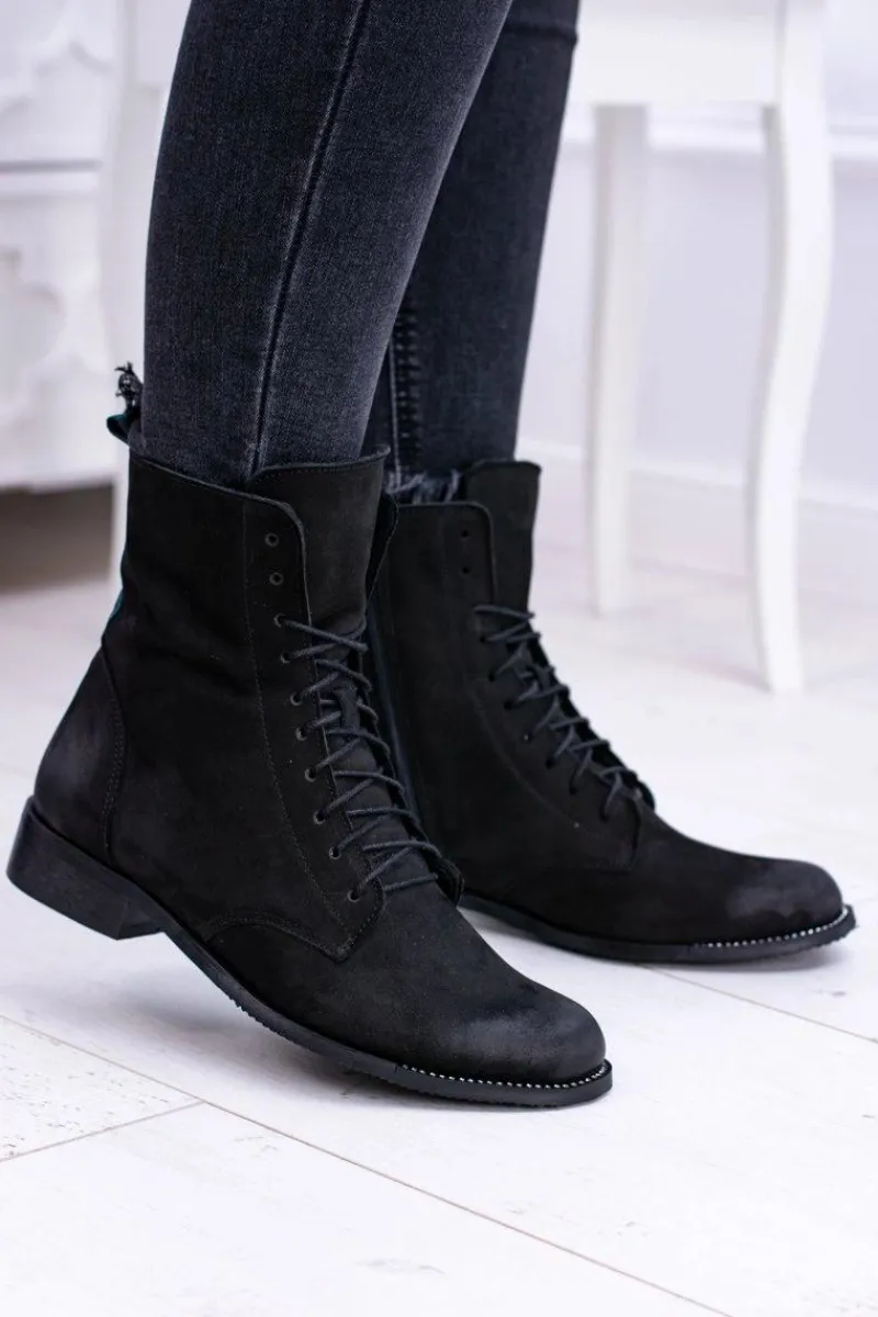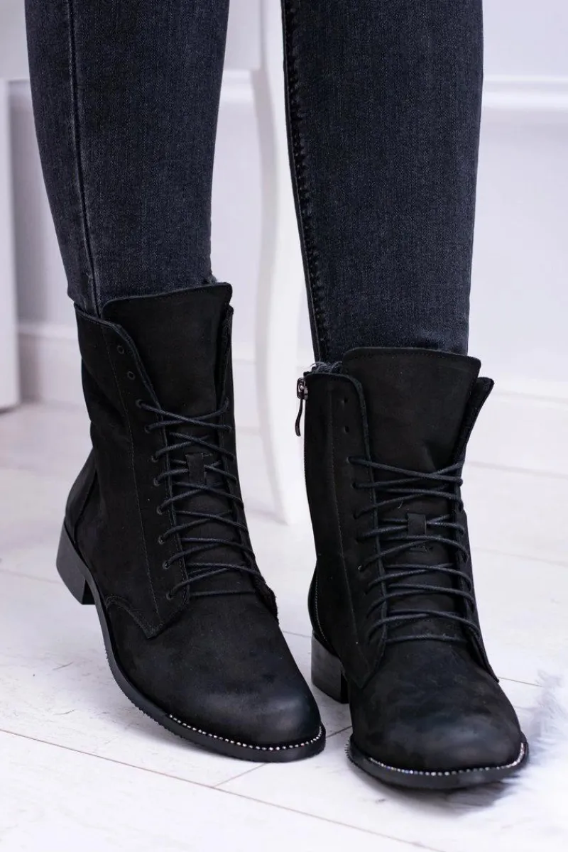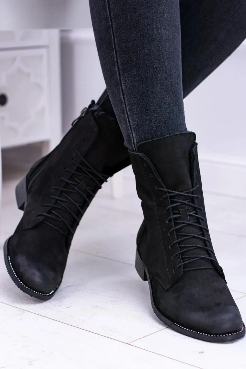 Discount Skórzane Czarne Damskie Botki The Island Damskie Botki Sznurowane|Botki Zimowe Damskie