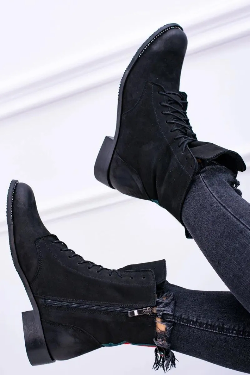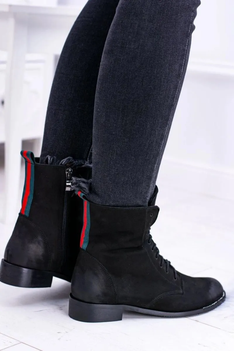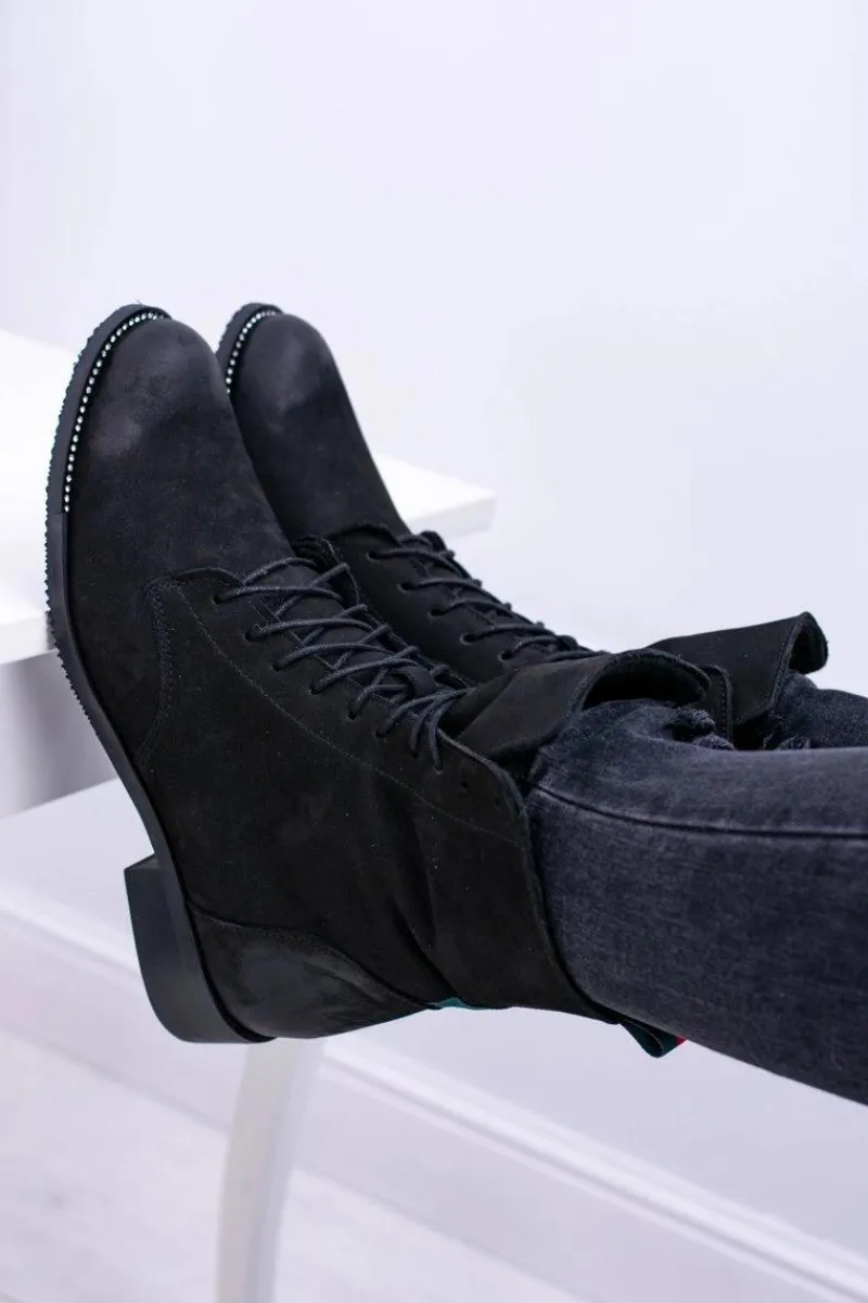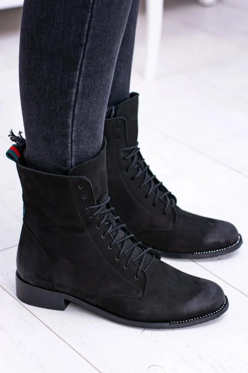 Discount Skórzane Czarne Damskie Botki The Island Damskie Botki Sznurowane|Botki Zimowe Damskie