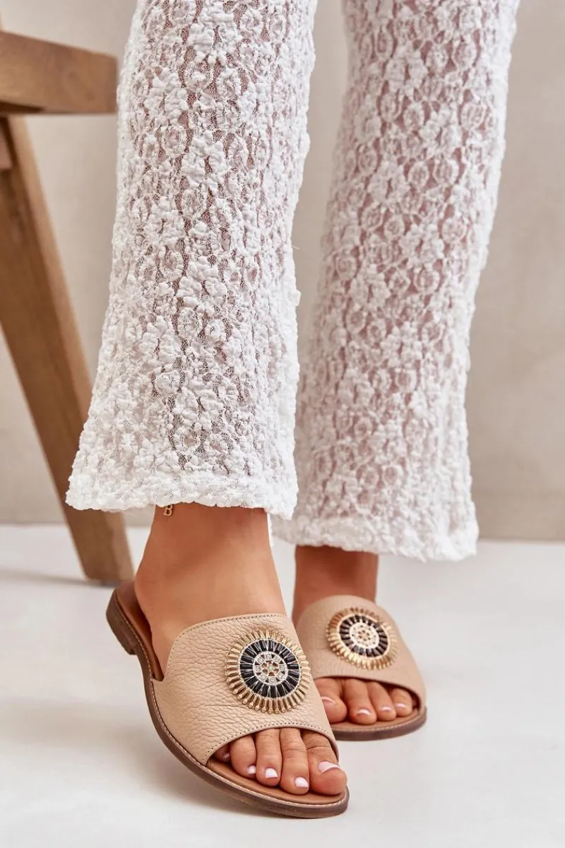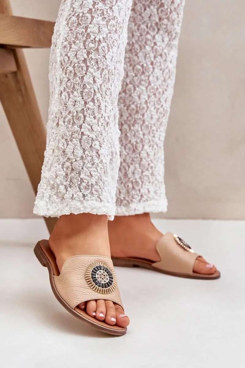 Damskie klapki wykonane z wysokiej jakości skóry naturalnej to połączenie elegancji i wygody. Osadzone na płaskim obcasie, zapewniają komfort noszenia przez cały dzień. Subtelna ozdoba na cholewce nadaje im wyjątkowego uroku i klasy, dzięki czemu świetnie sprawdzą się zarówno w casualowych, jak i bardziej eleganckich stylizacjach. Idealne na ciepłe dni, stanowią niezastąpiony dodatek do letnich sukienek, spodni czy spódnic. Przy wyborze rozmiaru prosimy sugerować się tabelą rozmiarów.