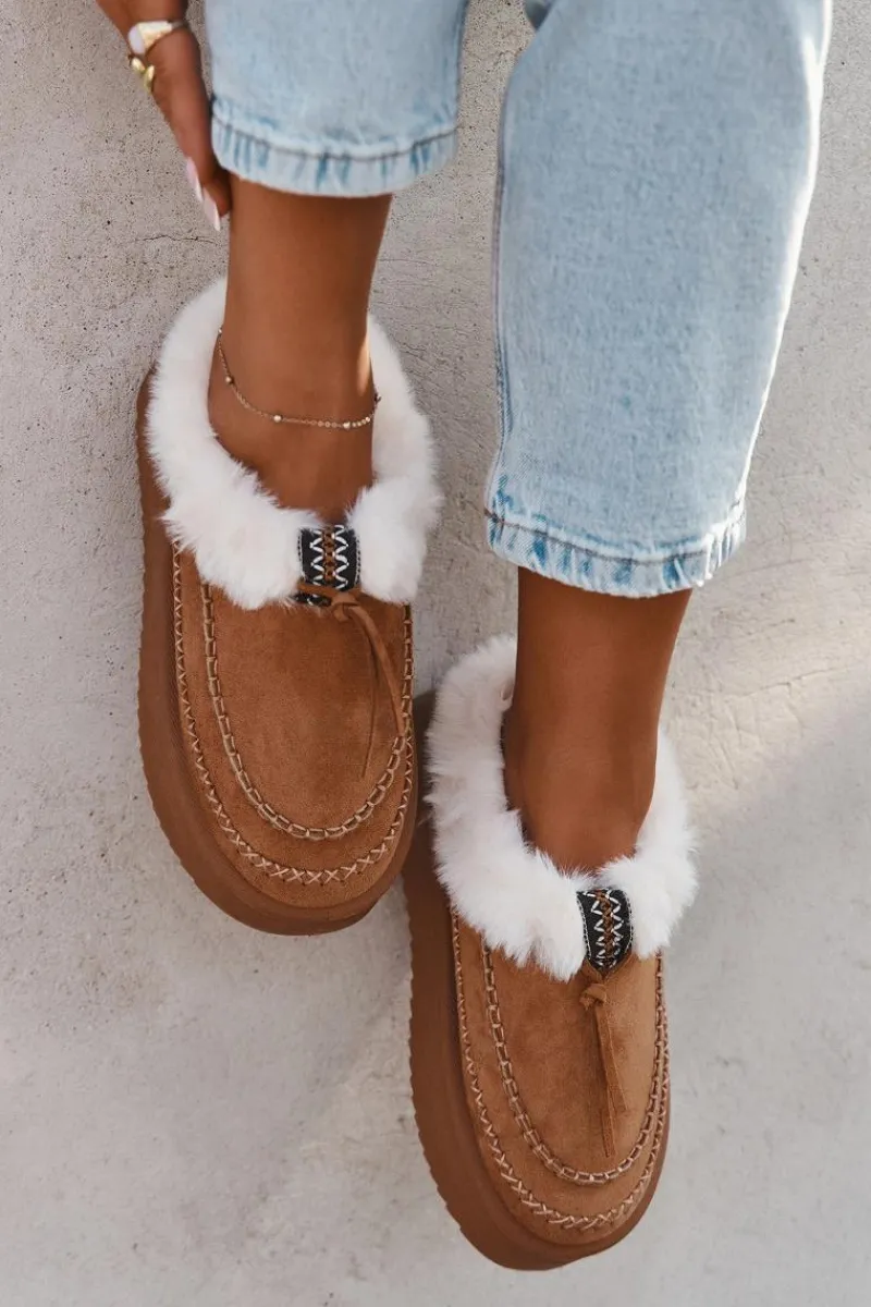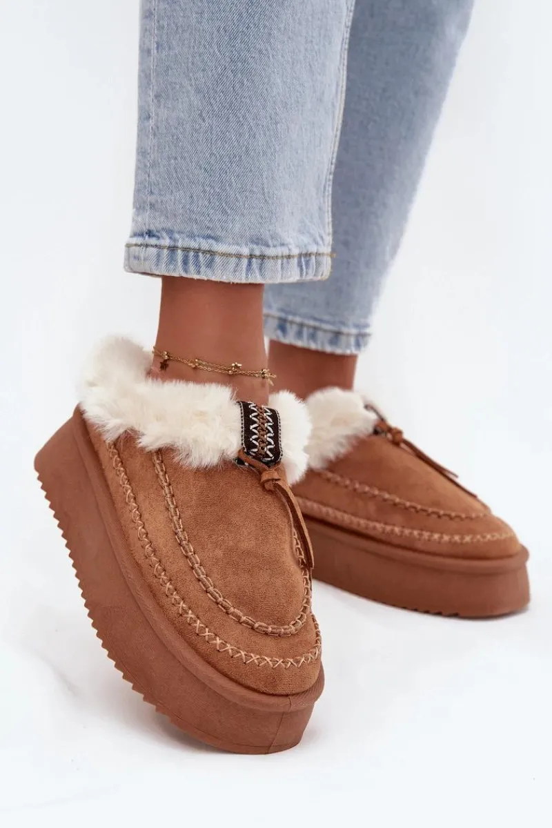 Śniegowce damskie wykonane z eko zamszu. Osadzone na masywnej platformie skutecznie izolują stopy od zimnego podłoża, zapewniając wygodę nawet podczas długiego noszenia. Wyróżniają się stylowym futerkiem, które dodaje im zimowego charakteru oraz dekoracyjnymi przeszyciami, podkreślającymi unikalny wygląd modelu. To idealny wybór na chłodne dni – praktyczne, ciepłe i zarazem stylowe obuwie, które świetnie dopełni codzienne zimowe stylizacje.