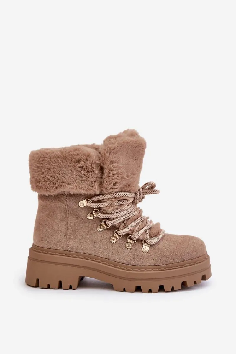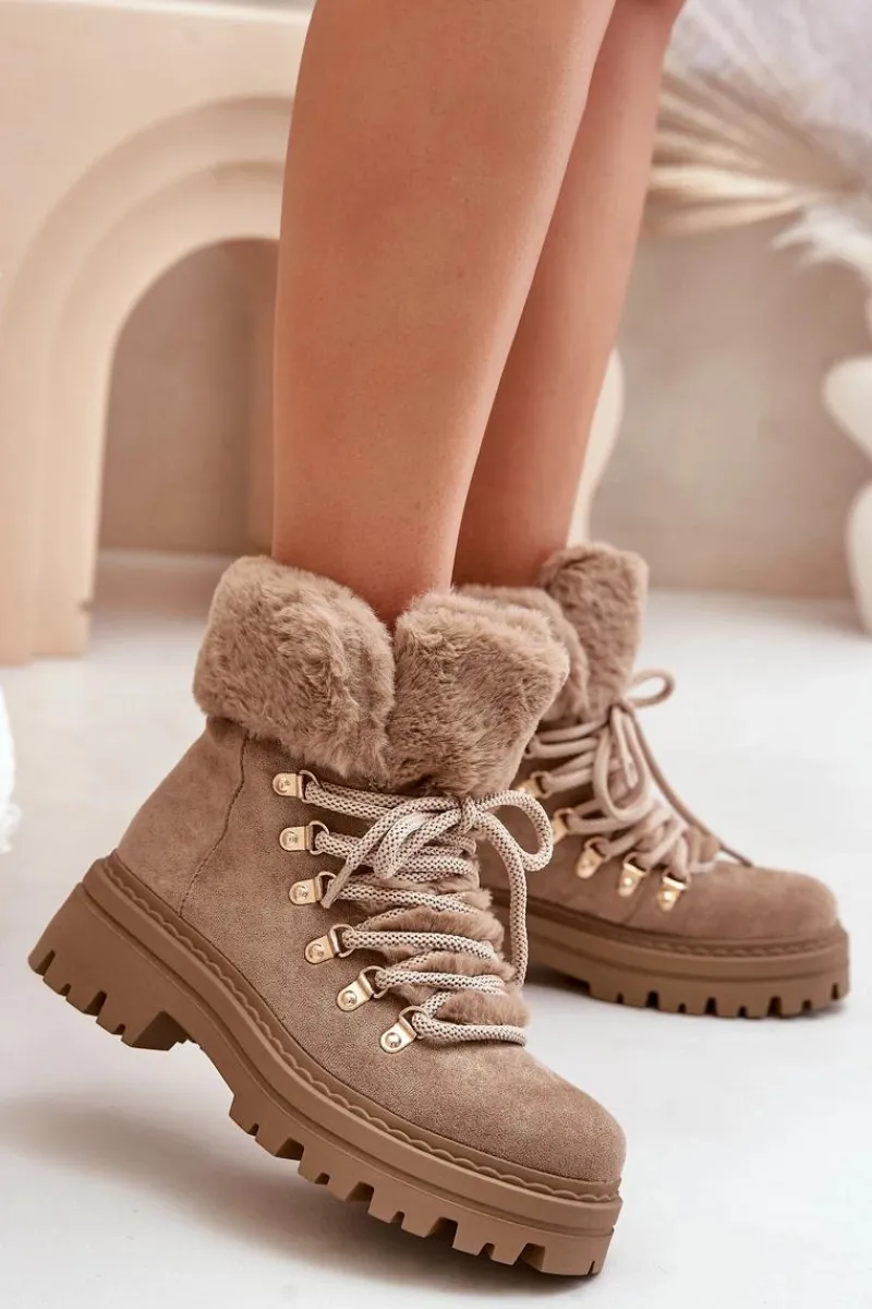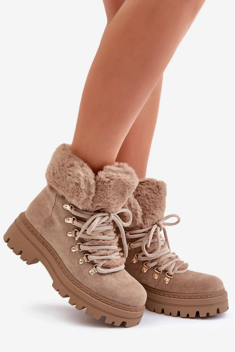 Trapery damskie wykonane z eko zamszu to doskonały wybór na chłodne dni. Sznurowanie pozwala na precyzyjne dopasowanie buta do stopy, zapewniając wygodę podczas codziennego użytkowania. Wnętrze ocieplane kocem obuwniczym gwarantuje ciepło i komfort nawet w mroźne dni. Górna część cholewki została ozdobiona miękkim futerkiem, które nie tylko dodaje stylu, ale również chroni przed zimnem. Te trapery łączą w sobie funkcjonalność i modny wygląd, idealnie sprawdzając się zarówno w miejskich stylizacjach, jak i podczas zimowych spacerów. Przy wyborze rozmiaru prosimy sugerować się tabelą rozmiarów.