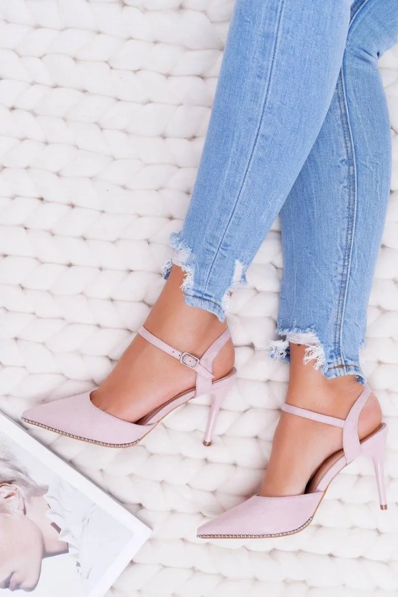 Wygodne, zamszowe szpilki z noskiem w szpic to marzenie każdej kobiety! Wysoka oraz stabilna szpilka zapewni Ci gwarancję dobrego samopoczucia oraz gustownego wyglądu. Ekozamsz z którego zostały wykonane z pewnością sprawi, że zostaniesz zauważona! Model klasycznie zapinany delikatnym paskiem wokół kostki. Przy wyborze rozmiaru prosimy kierować się tabelą rozmiarów.