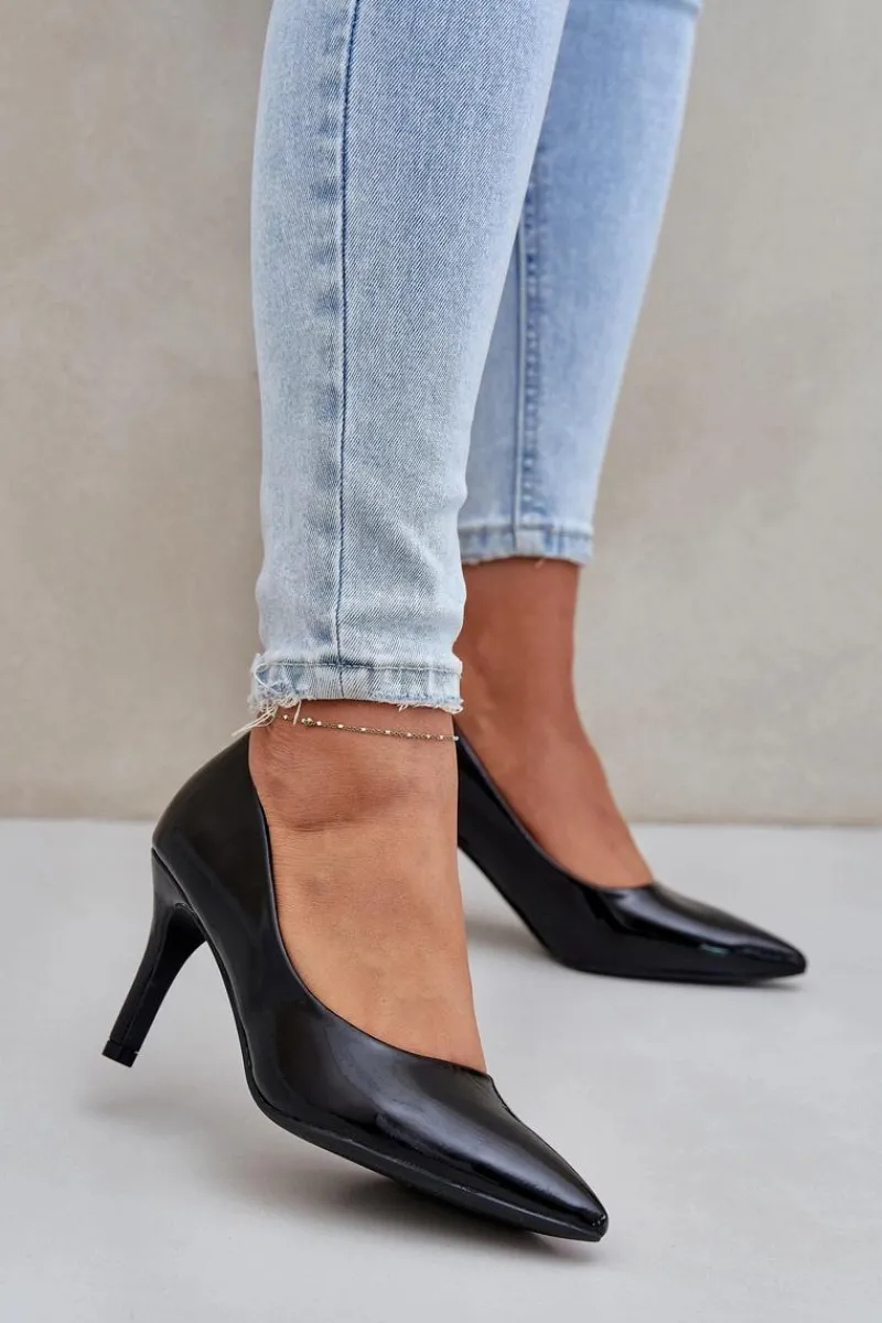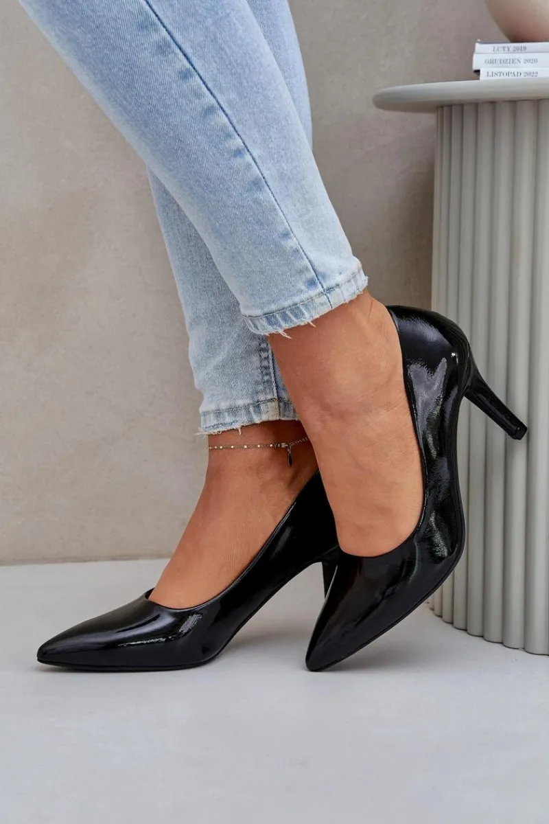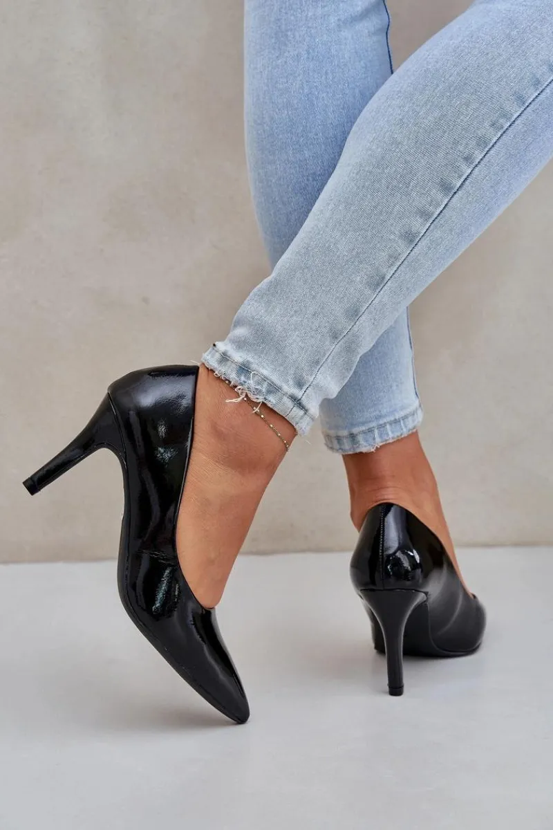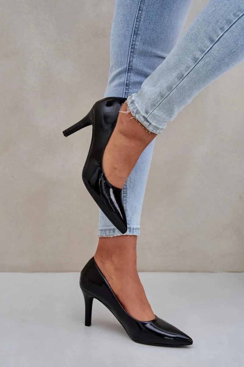 Damskie eleganckie szpilki wykonane z lakierowanej eko skóry to doskonała opcja do różnorodnych stylizacji. Szpiczaste noski podkreślają delikatny, kobiecy styl, a błyszcząca eko skóra dodaje im wyjątkowego blasku. Te szpilki są idealne na wieczorne wyjścia, specjalne okazje oraz spotkania biznesowe. Przy wyborze rozmiaru prosimy sugerować się tabelą rozmiarów.
