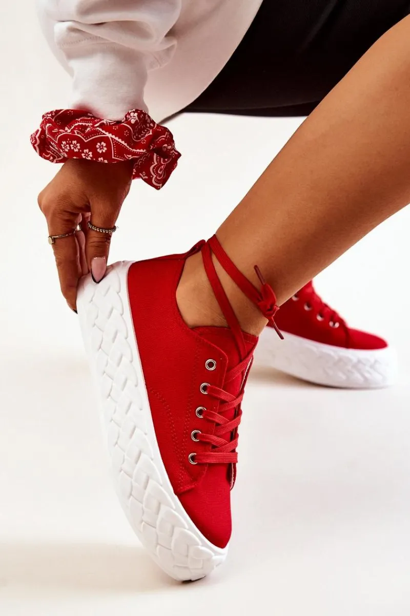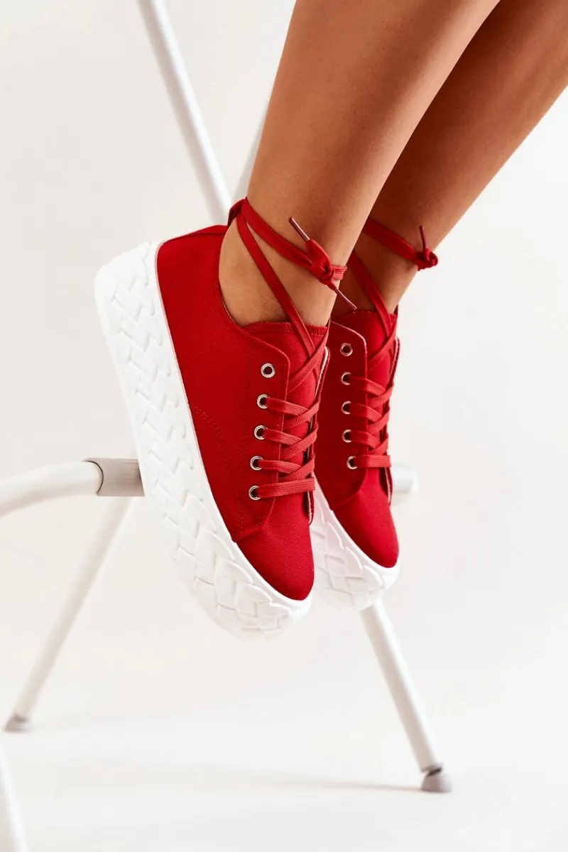 Damskie tenisówki na masywnej platformie pasują do wielu stylizacji. Wykonane z tkaniny. Posiadają materiałową wkładkę. Gumowa platforma jest przyozdobiona pięknym warkoczem. Świetnie sprawdzą się zarówno do spodni jak i spódnic. Wyraź siebie poprzez swój styl i kup te świetne tenisówki już dziś! Przy wyborze rozmiaru prosimy sugerować się tabelą rozmiarów.