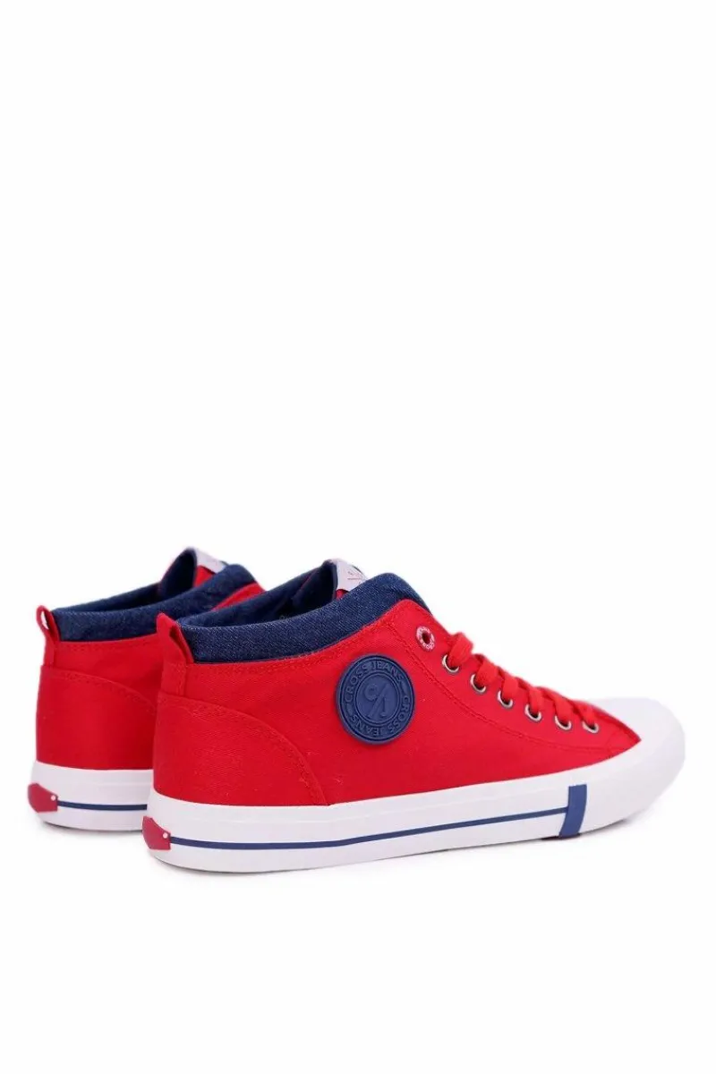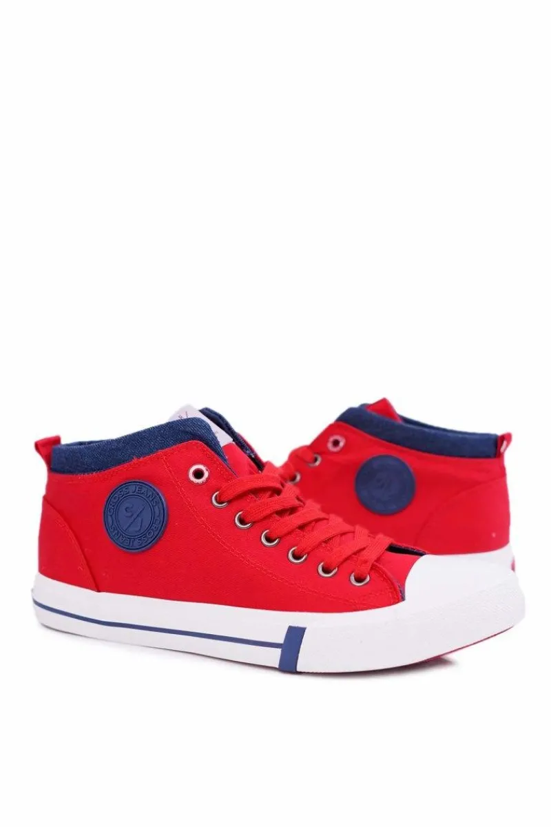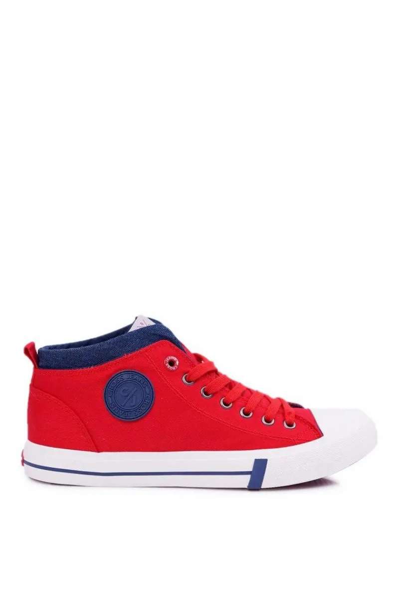 Discount Trampki Męskie Wysokie Materiałowe Czerwone DD1R4059 Męskie Trampki Męskie Cross Jeans|Trampki Wysokie