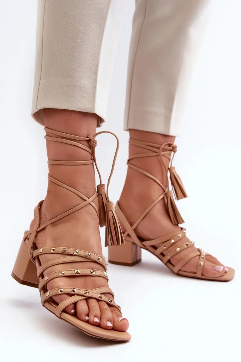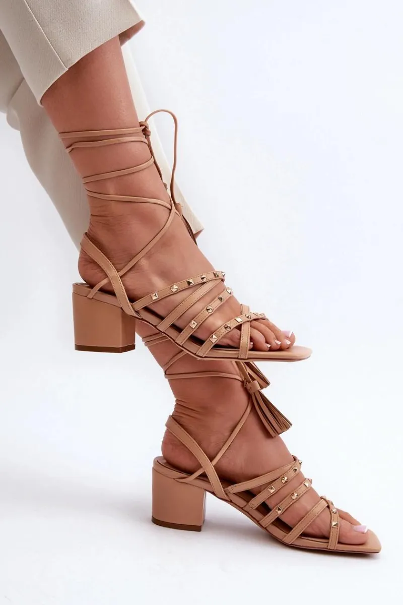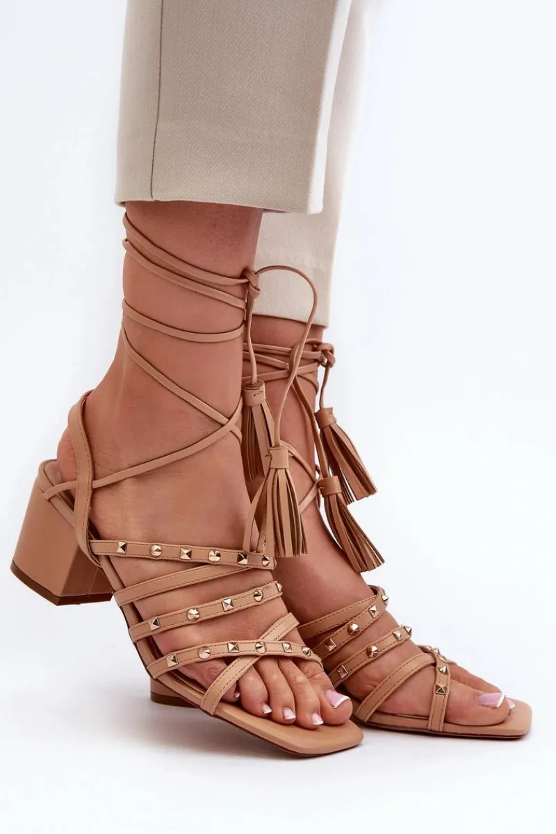 Stylowe sandały damskie wykonane z eko skóry. Z przodu przeplatające się paseczki dodatkowo ozdobione ćwiekami. Model jest wiązany. Doskonałe na letnie dni, te sandały będą idealnym uzupełnieniem Twojej letniej garderoby, dodając nutę stylu i oryginalności. Przy wyborze rozmiaru prosimy sugerować się tabelą rozmiarów.