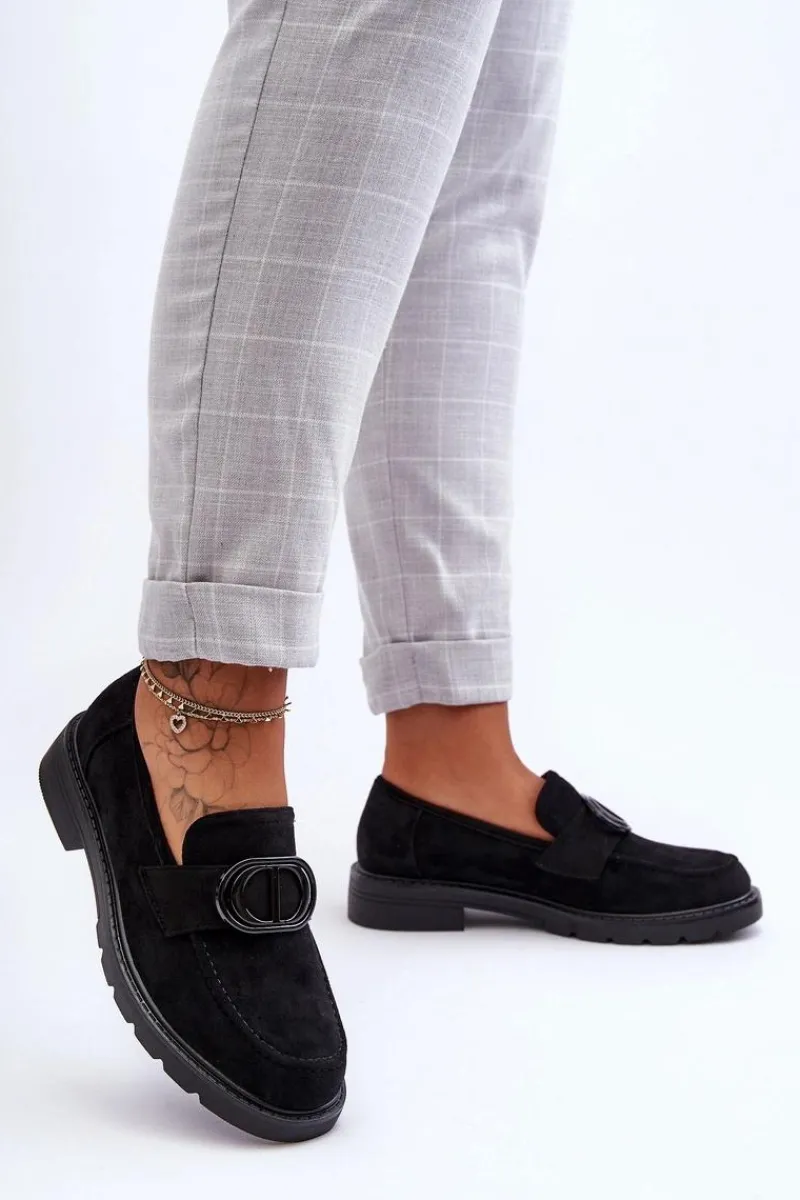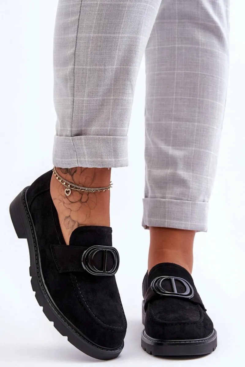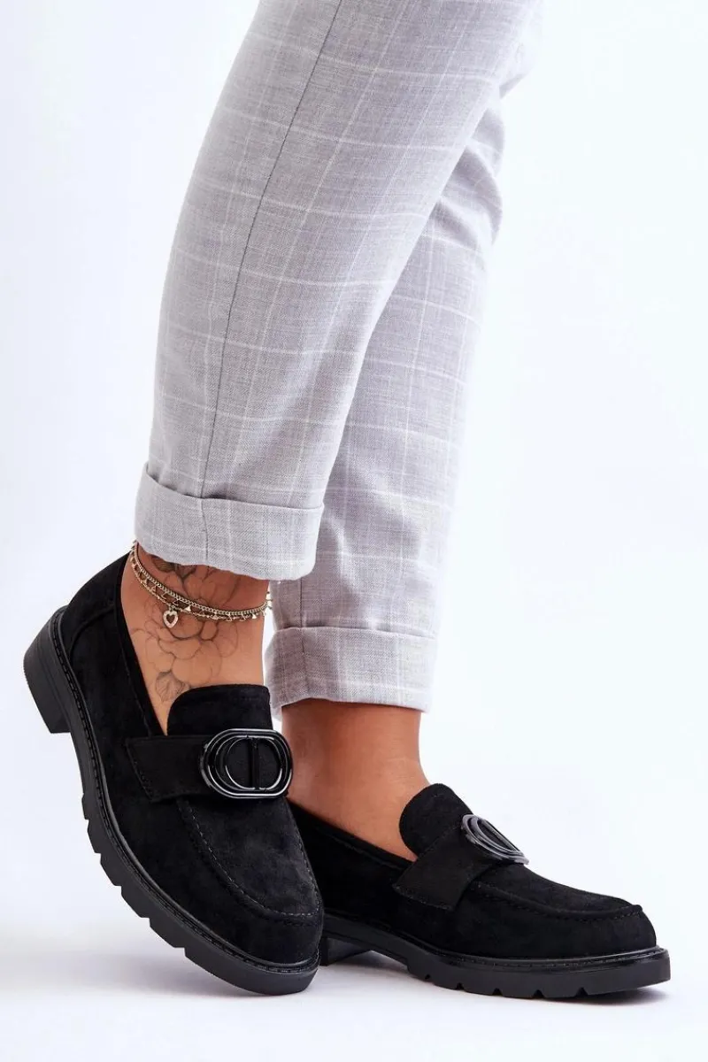 Modne damskie mokasyny zostały wykonane z eko zamszu. Buty te osadzono na masywnej platformie i płaskim obcasie. Z przodu na pasku znajduje się mała ozdoba. Eko skórzana wkładka pozwoli na wygodne użytkowanie obuwia. Idealne do wiosenno-jesiennych stylizacji! Przy wyborze rozmiaru prosimy sugerować się poniższą tabelą rozmiarów.