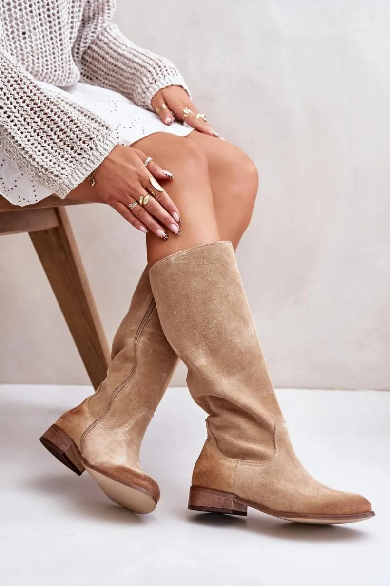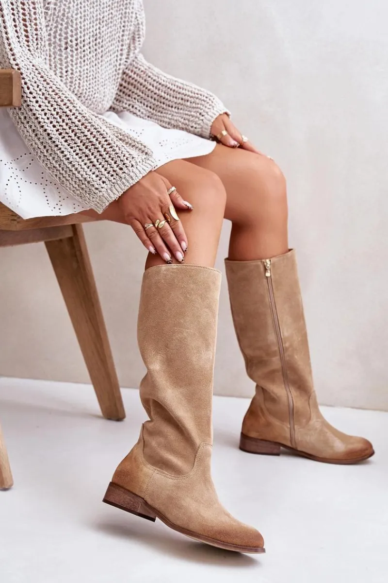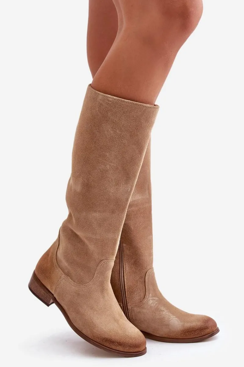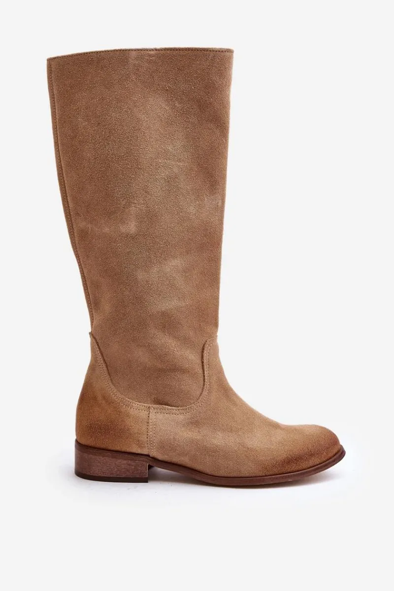 Kozaki damskie wykonane z wysokiej jakości naturalnego zamszu. Zapinane na suwak znajdujący się na boku. Osadzone na płaskim obcasie. Nie posiadają ocieplenia. Noski zaokrąglone. Zapiętek jest usztywniony. Wygodny i komfortowy w użytkowaniu model. Ten klasyczny fason świetnie sprawdzi się w wielu stylizacjach! Przy wyborze rozmiaru prosimy sugerować się tabelą rozmiarów.