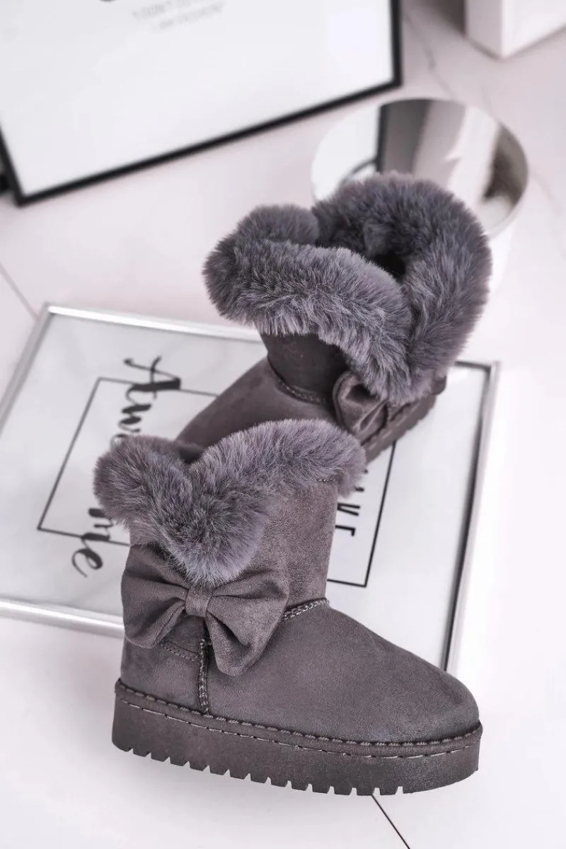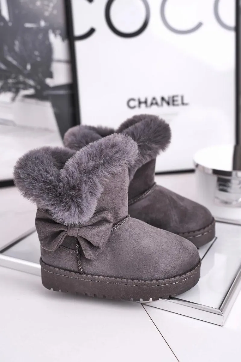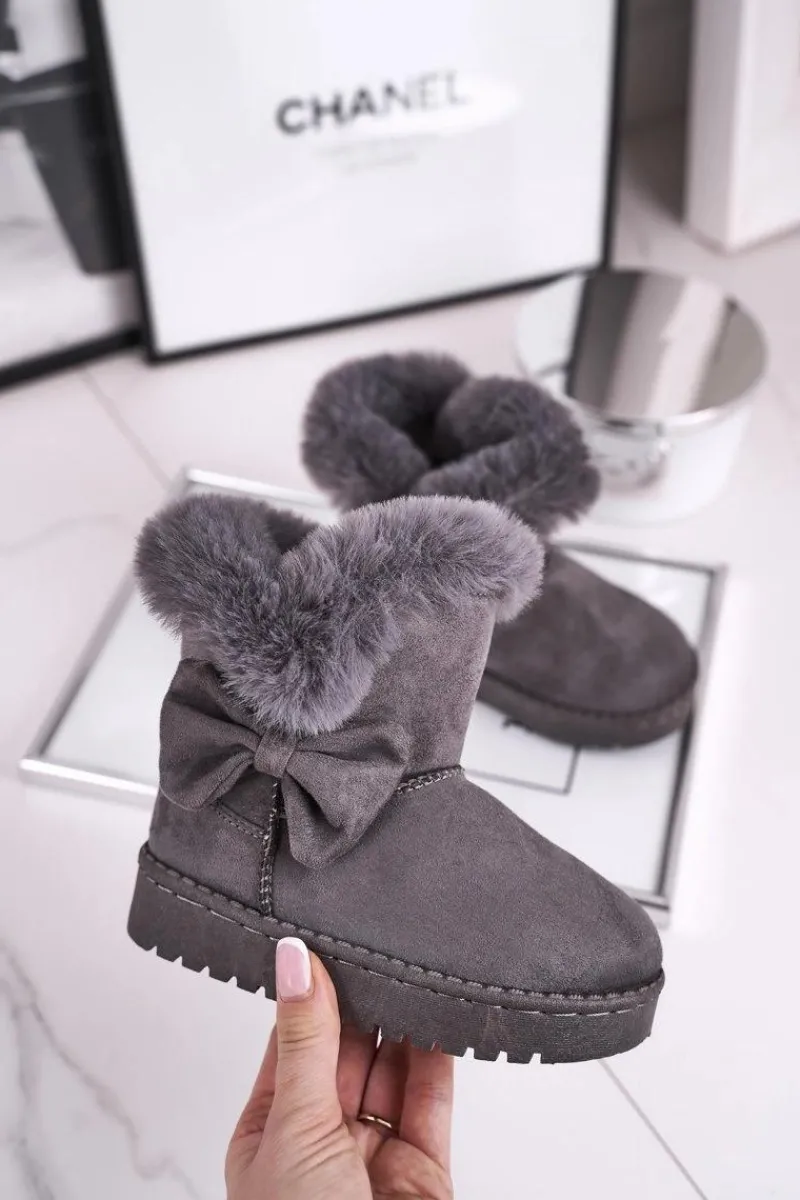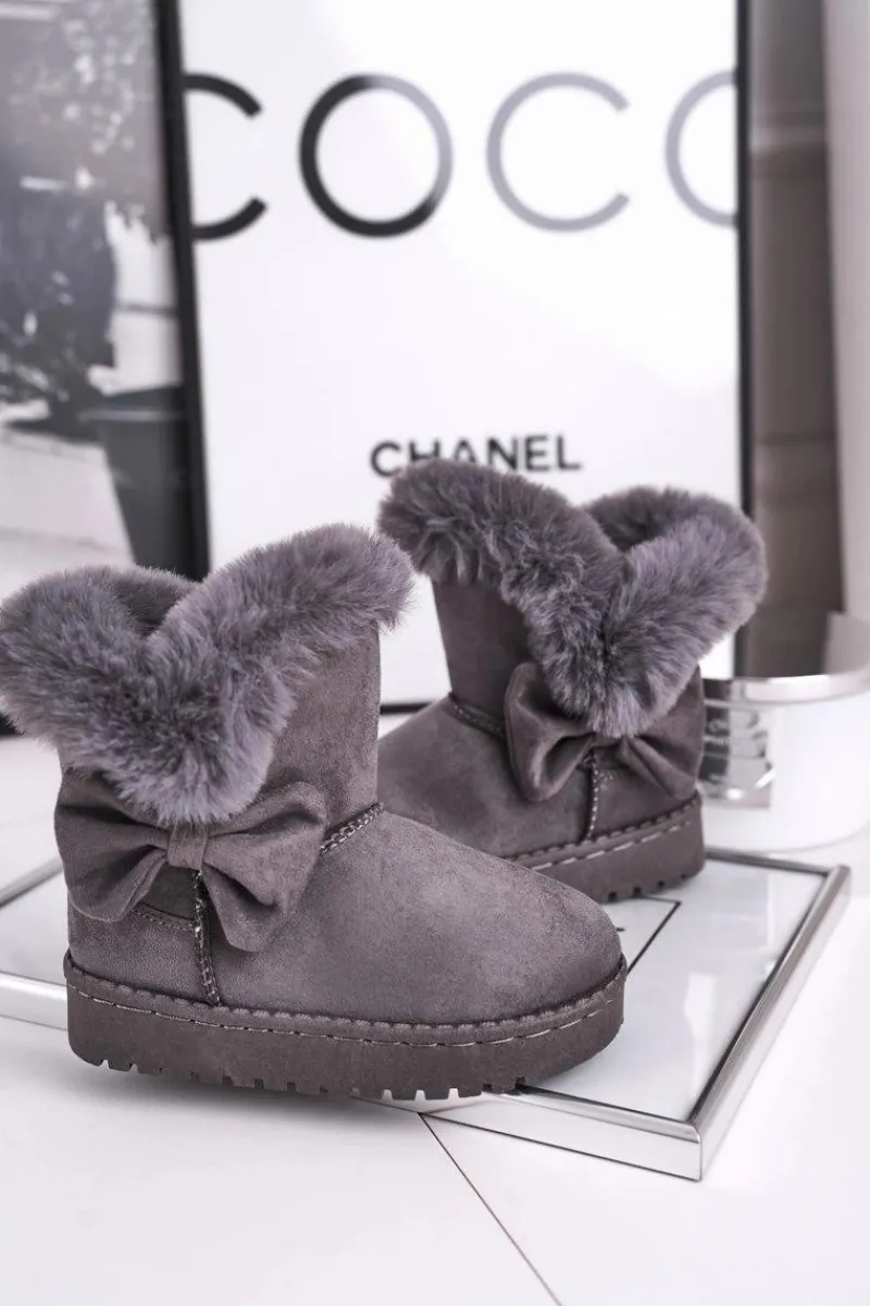 Dziecięce botki śniegowce z futerkiem kokardką szare Vella Dzieci Dziewczęce