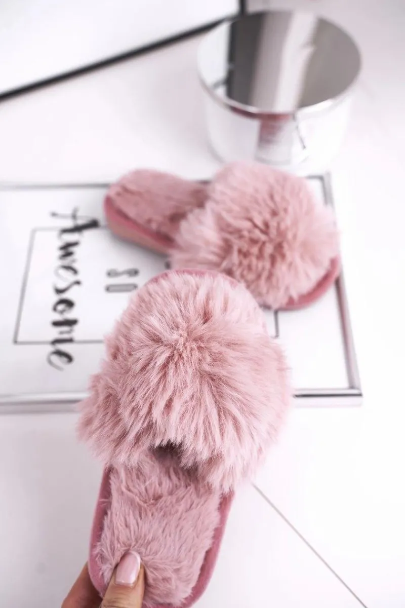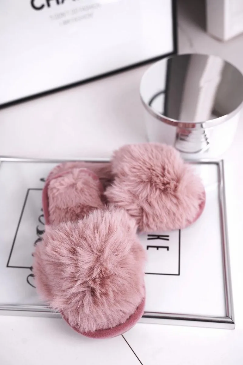 Dziecięce Papcie Klapki z Futerkiem Pudrowy Róż Snow Ball Dzieci Dziewczęce|Dziewczęce