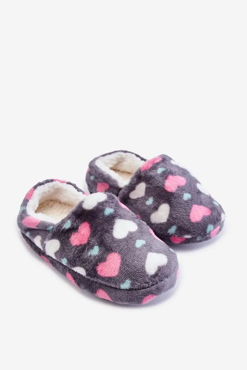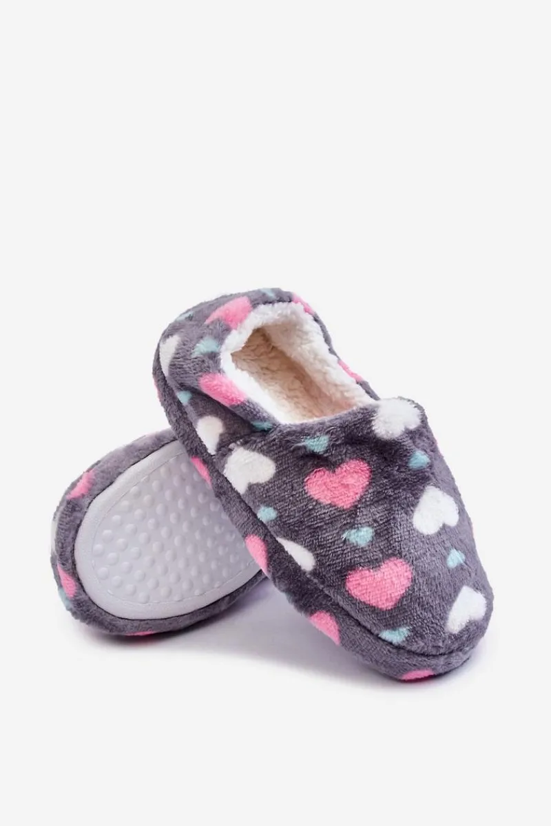 Dziewczęce|Back To School>Boto Dziecięce Ocieplane Wsuwane Papcie W Serca Szare Meyra