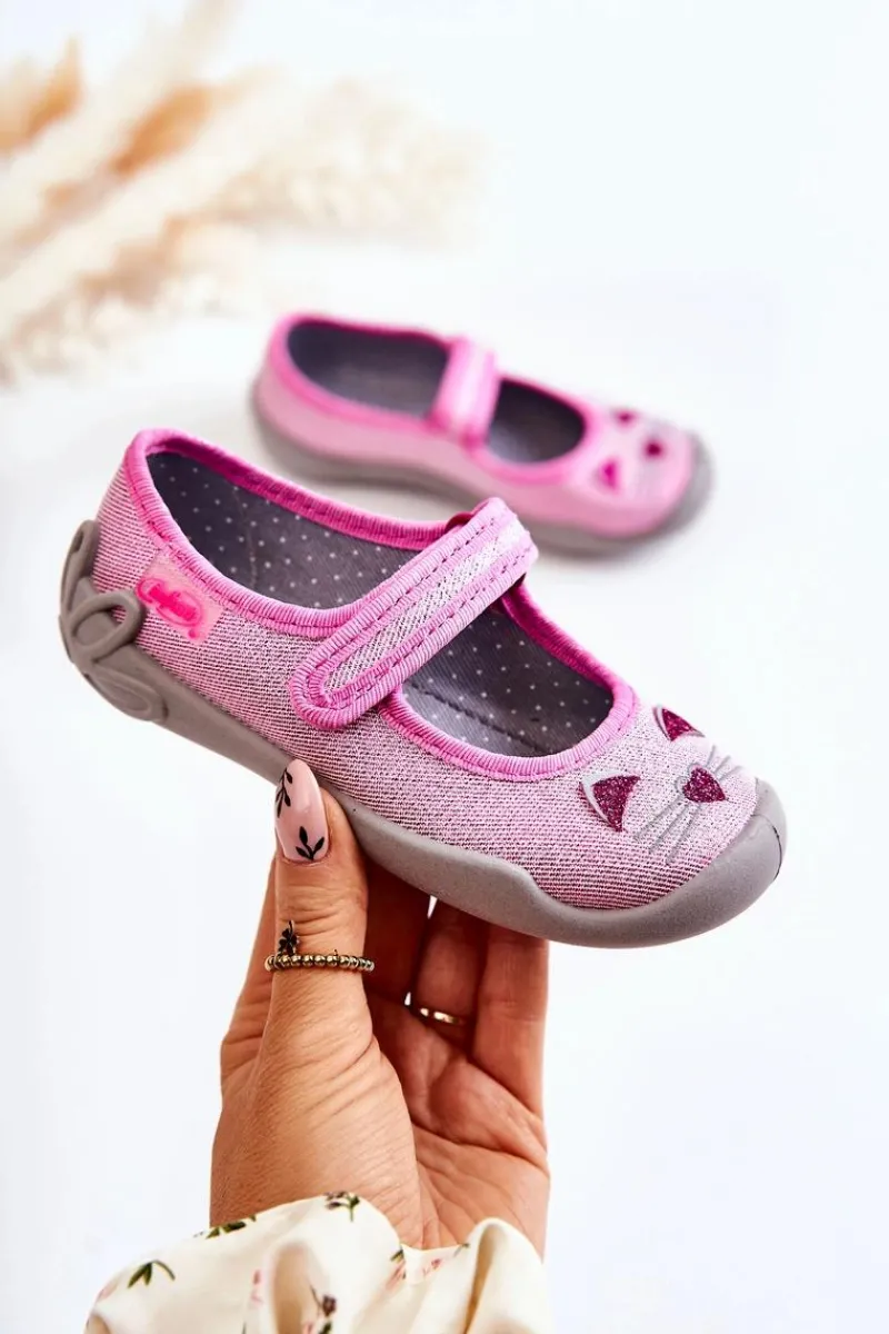 Dziewczęce|Balerinki Dziecięce>BEFADO Papcie Baleriny Kotki 114X451 Różowo-Szare