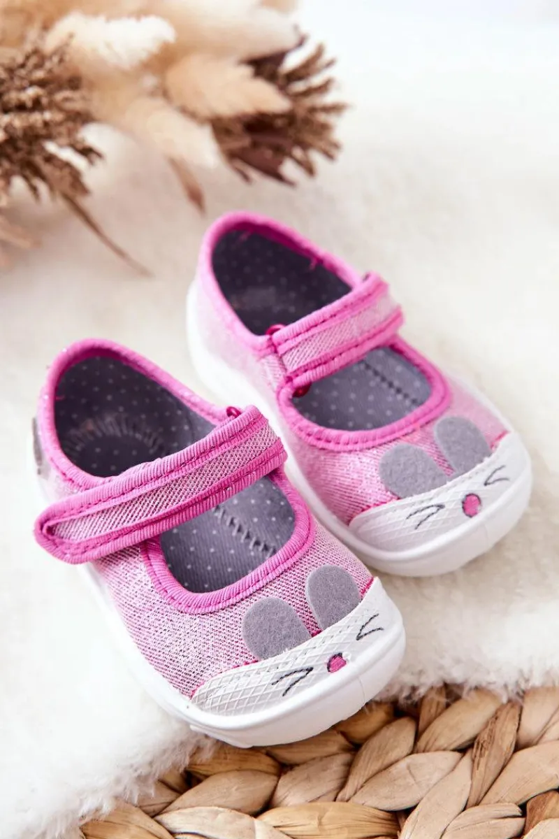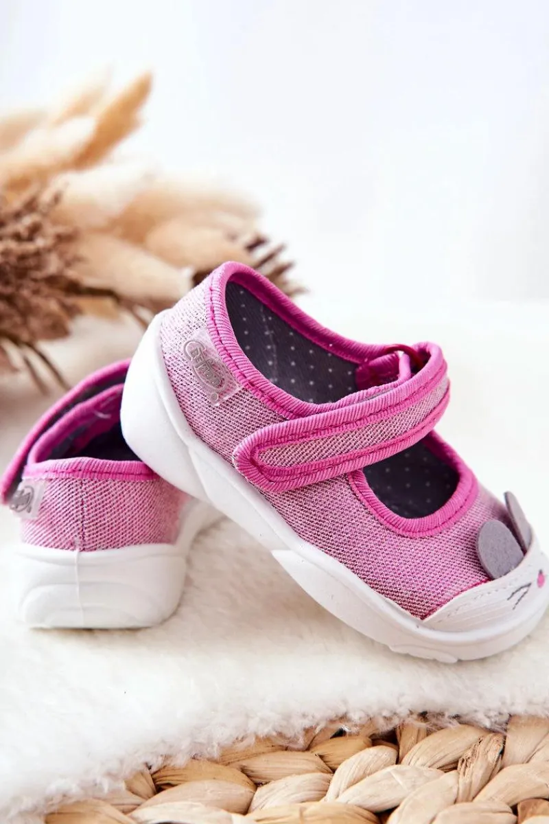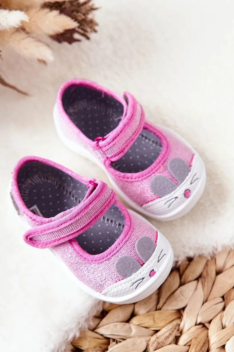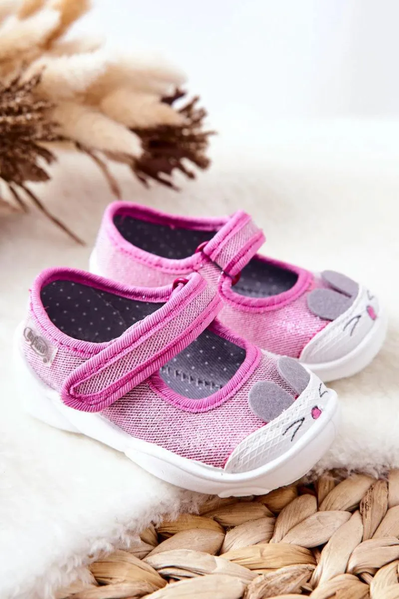 Dziewczęce papcie chronią stopy dziecka przed powstaniem płaskostopia, dając im swobodę i komfort podczas wielu godzin spędzonych w żłobku czy na zabawach na dworze. Obuwie posiada zapięcie na rzep, które podtrzymuje stopę. Buciki są lekkie i wykonane z bawełnianych tkanin, co znacznie przyczynia się do ograniczenia potliwości stópek. Podwyższony zapiętek pozwala na stabilizację stopy dziecka, co jest ważne przy każdej aktywności malucha. Model ten posiada szeroki czubek, co zapewnia przestrzeń dla małych paluszków, dzięki czemu dziecko czuje się komfortowo.Przy wyborze rozmiaru prosimy kierować tabelą rozmiarów.