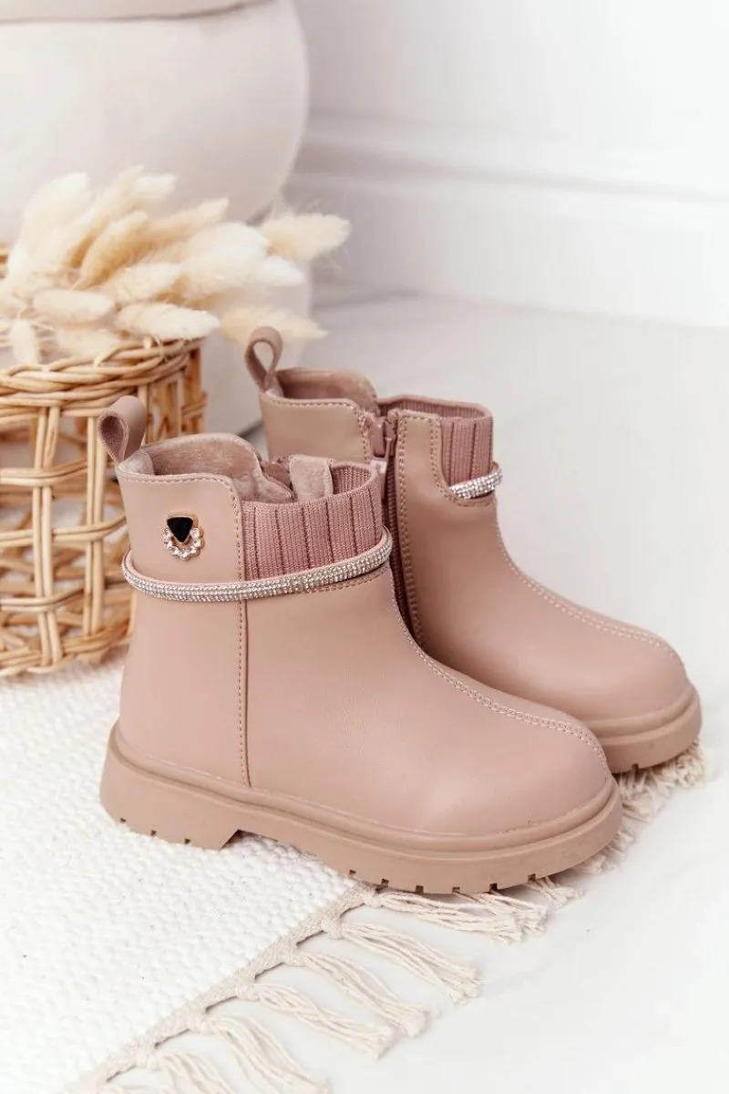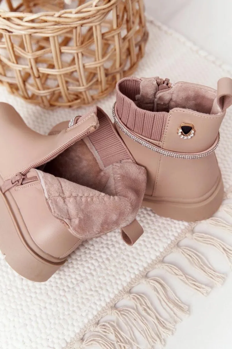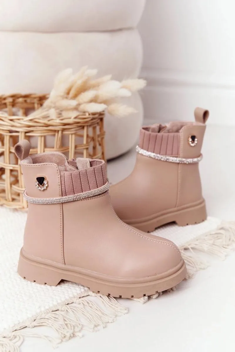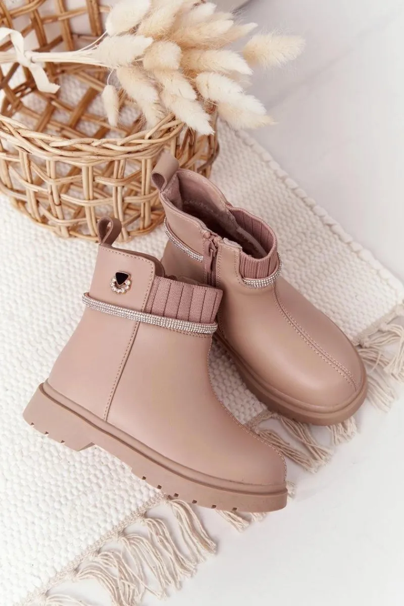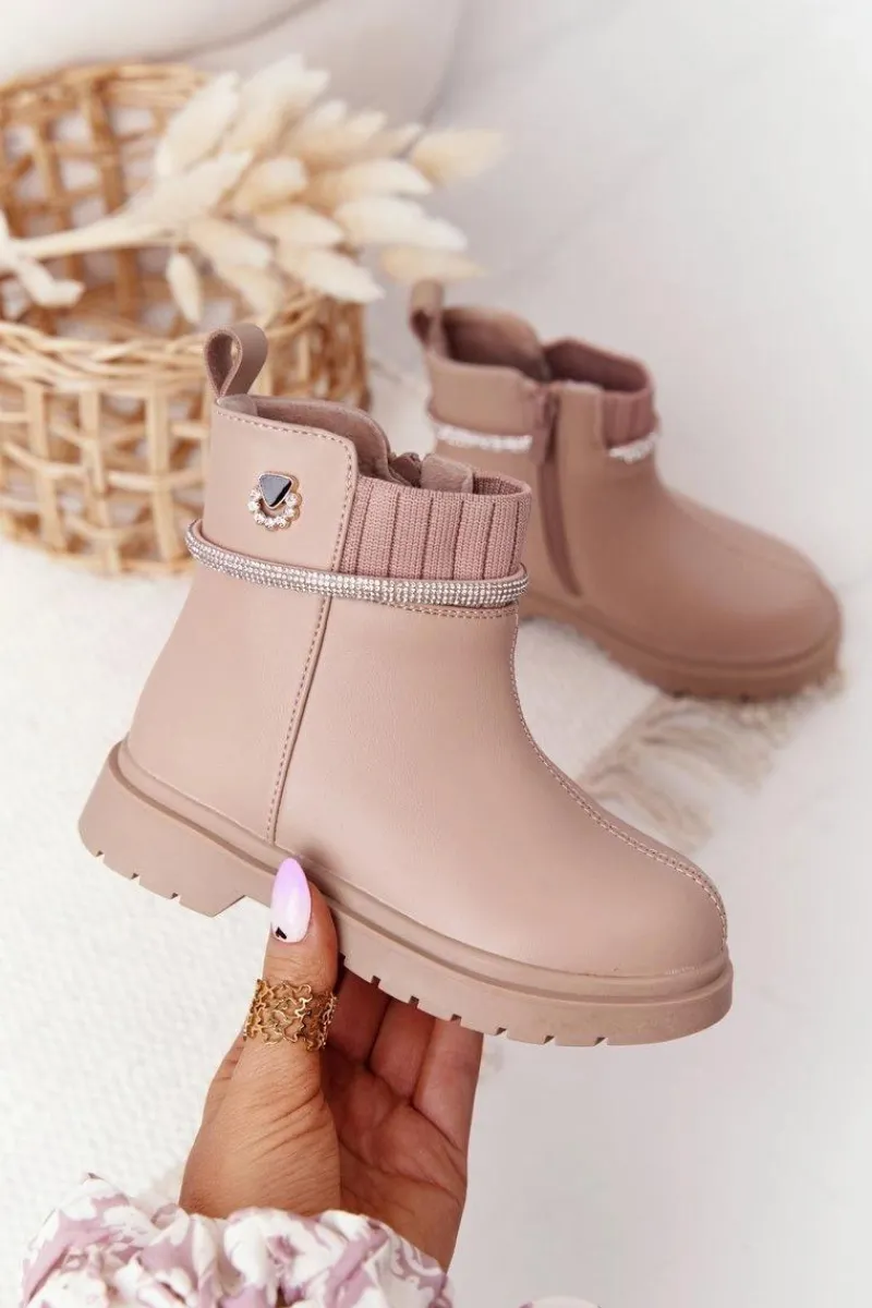 Dziewczęce>Boto Dziecięce Botki Z Cekinami Beżowe Toffees