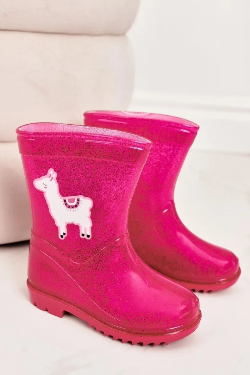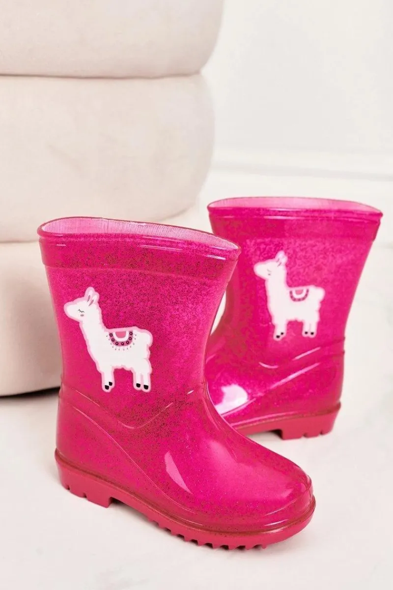 Dziewczęce>Boto Dziecięce Brokatowe Kalosze Z Lamą Różowe