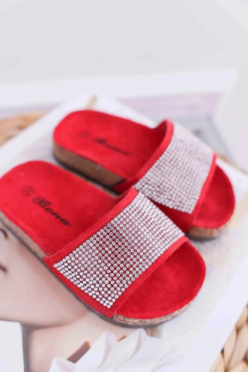 Klapki idealne na lato! Zamszowy wzór wykonany w najwyższej jakości materiału! Miękka i profilowana wkładka zapewnia niesamowitą wygodę i komfort użytkowania. Klapki posiadają piękne zdobienie w postaci drobnych kryształków na wierzchu. Występują w kilku cudownych kolorach. Musisz je mieć, kup teraz w doskonałej cenie!