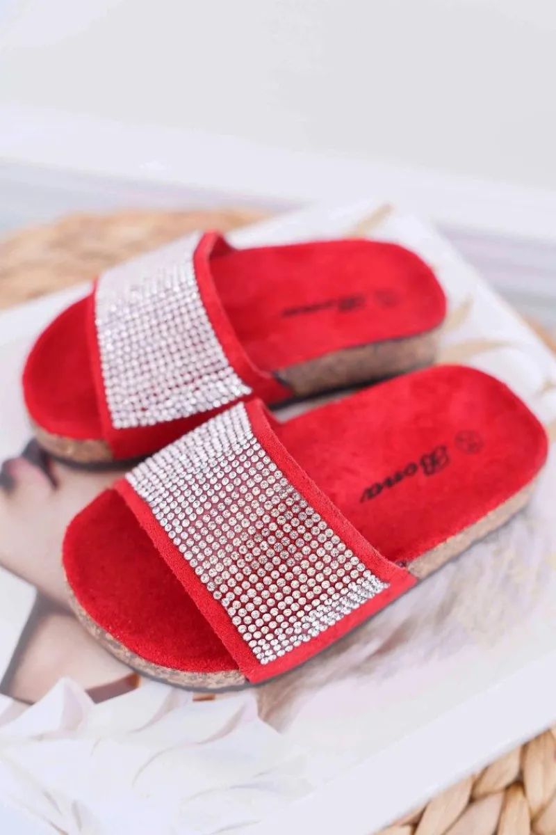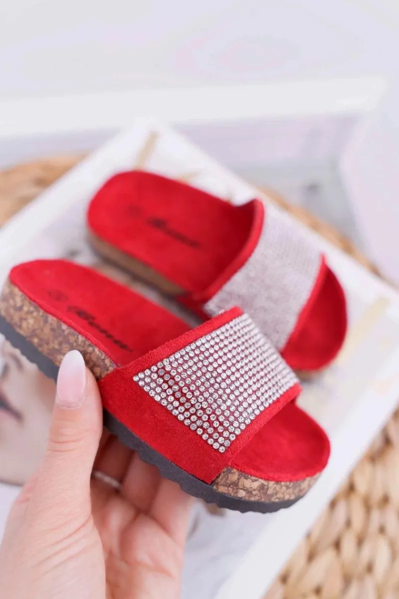 Dziewczęce>Boto Dziecięce Czerwone Klapki Na Korku Kryształki Malena