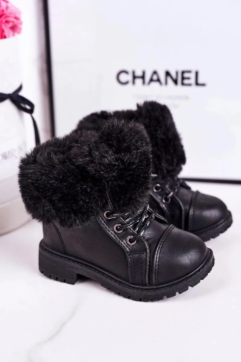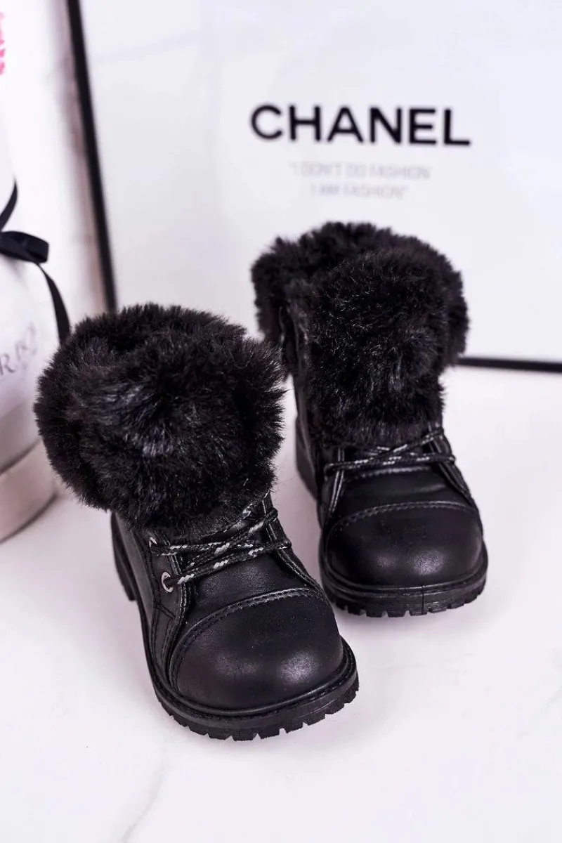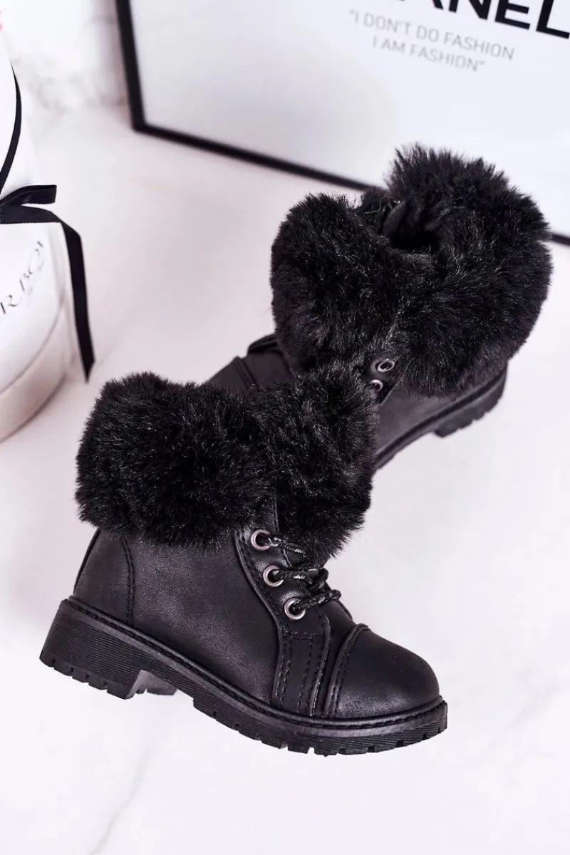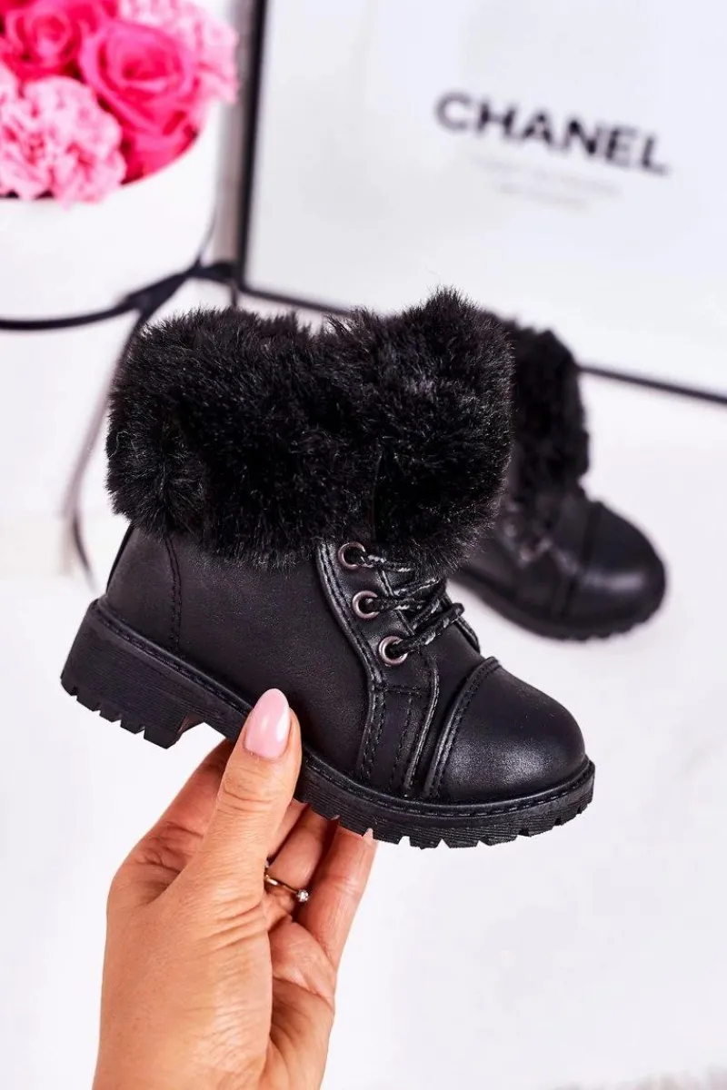 Dziewczęce>Boto Dziecięce Ocieplane Traperki Z Futerkiem Czarne Nella
