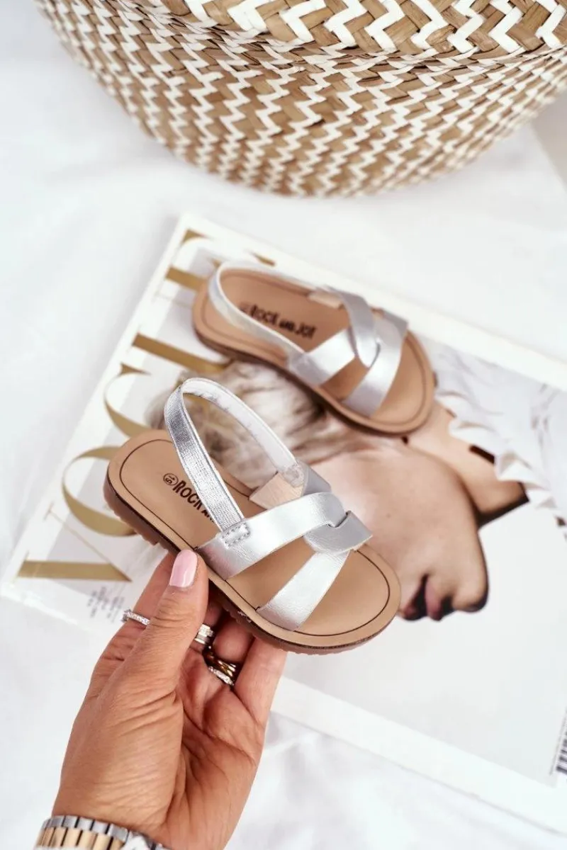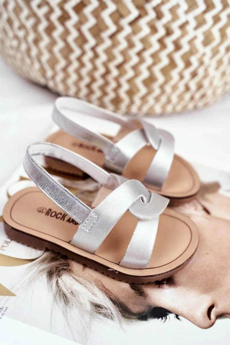 Dziewczęce>Boto Dziecięce Sandałki Ze Ściągaczem Srebrne Bambino