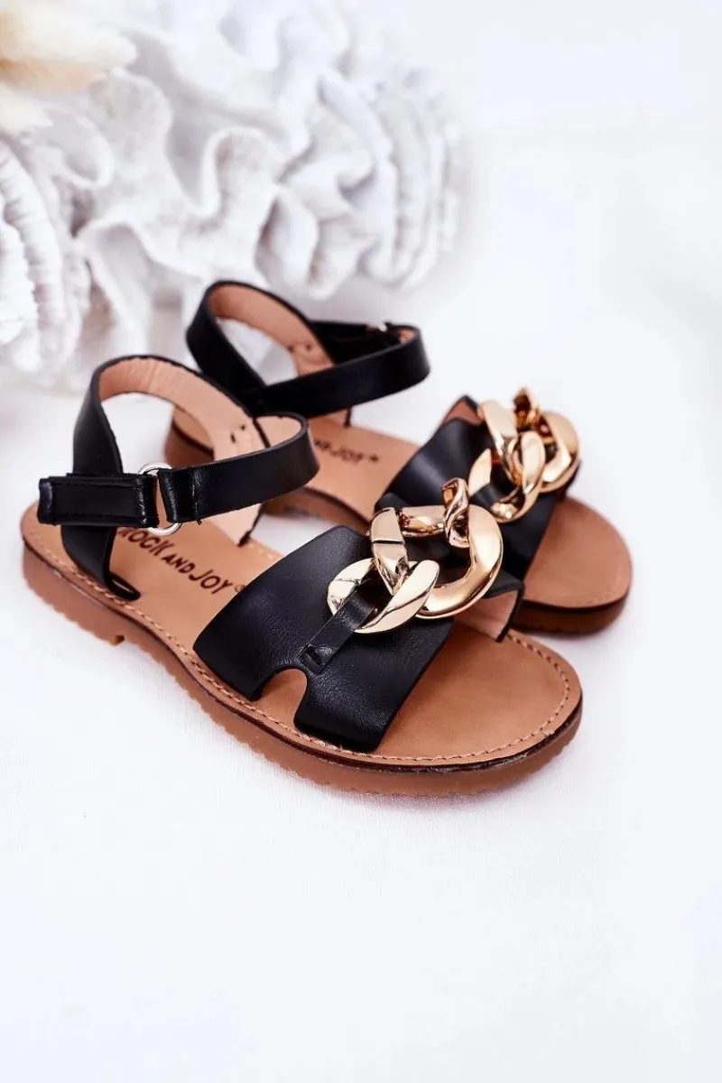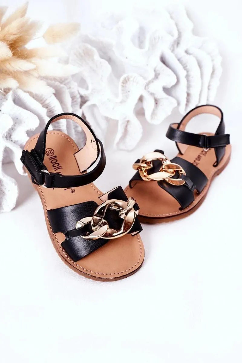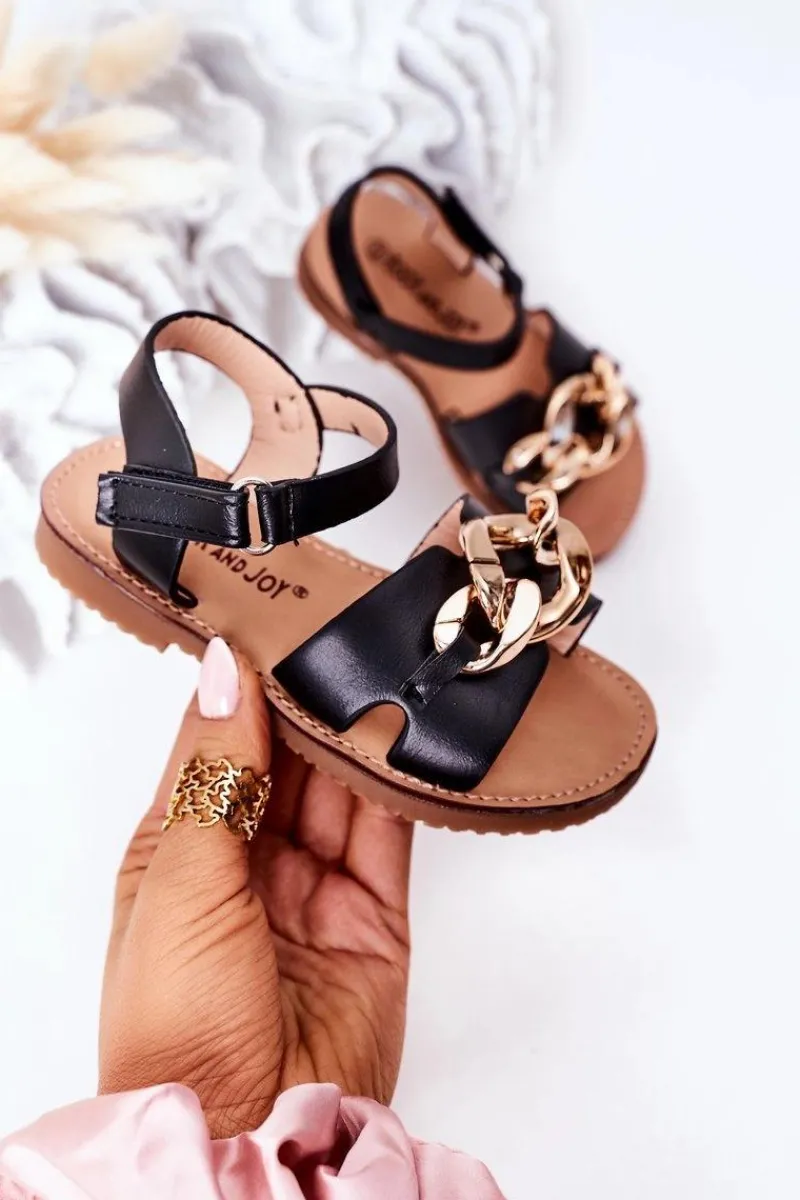 Dziewczęce>Boto Dziecięce Sandały Z Łańcuchem Czarne Buffy