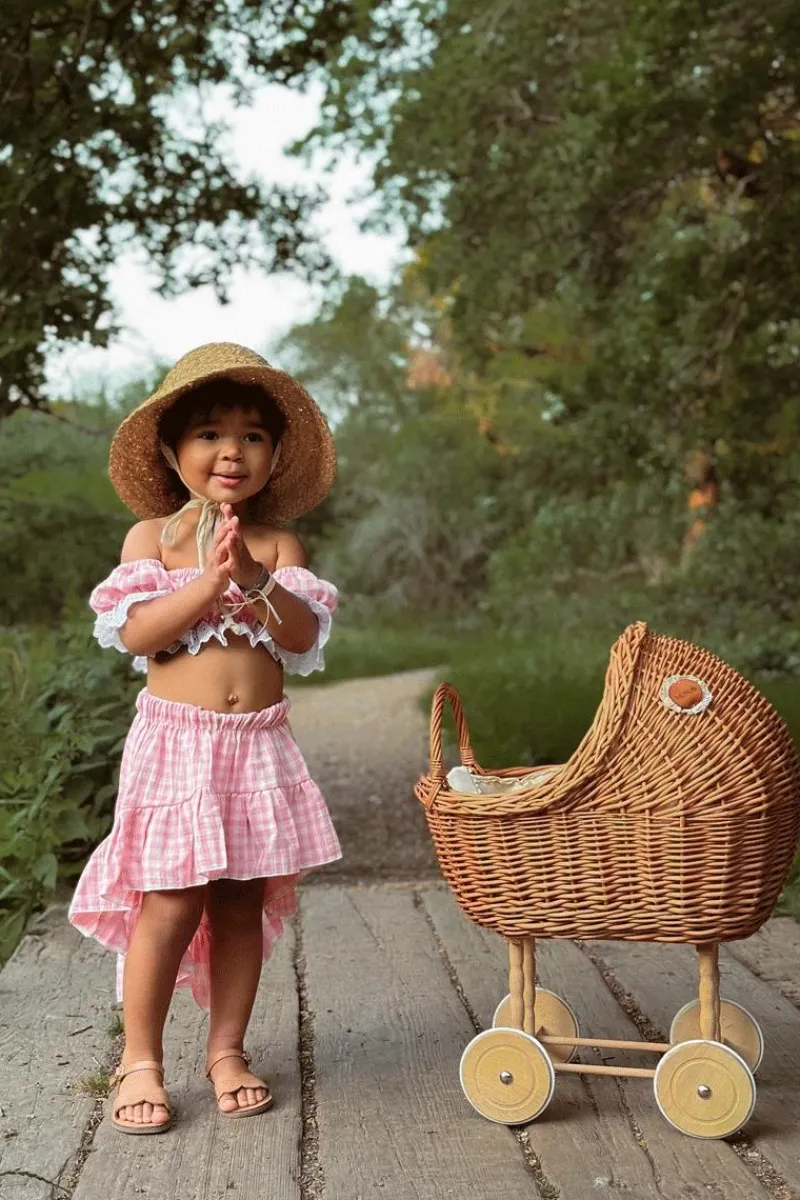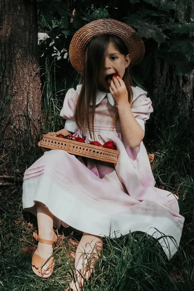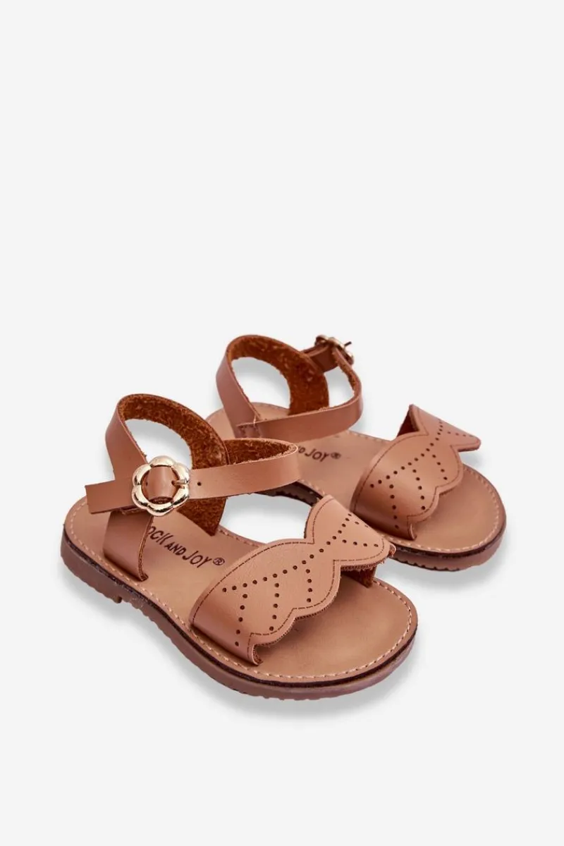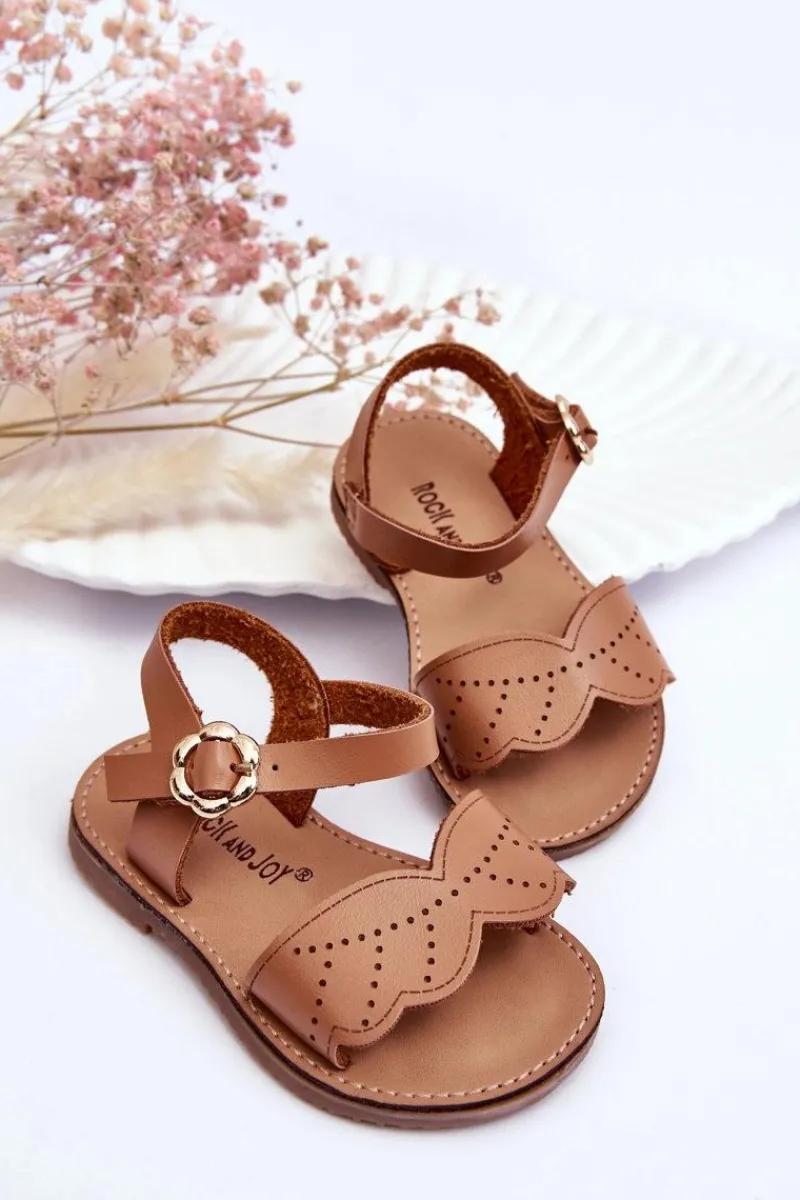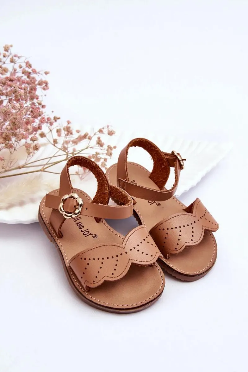 Klasyczne, dziecięce sandałki zostały wykonane z eko skóry. Odkryty nosek pozwoli na odpowiedni przepływ powietrza w obuwiu. Zapinane na regulowany pasek ze sprzączką w kształcie kwiatu. Paseczek na przodzie został ozdobiony delikatnym, ażurowym wzorem. Podeszwa została wykonana z gumy i jest antypoślizgowa. Przy wyborze rozmiaru prosimy sugerować się tabelą rozmiarów.