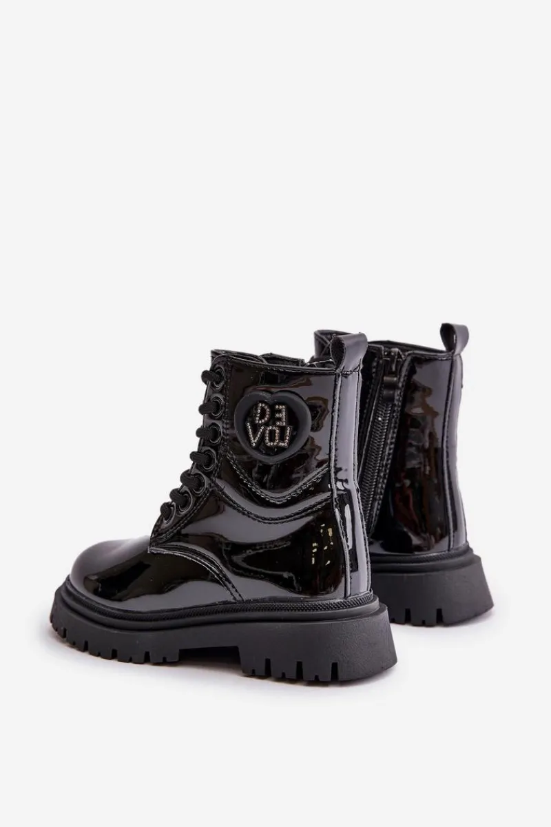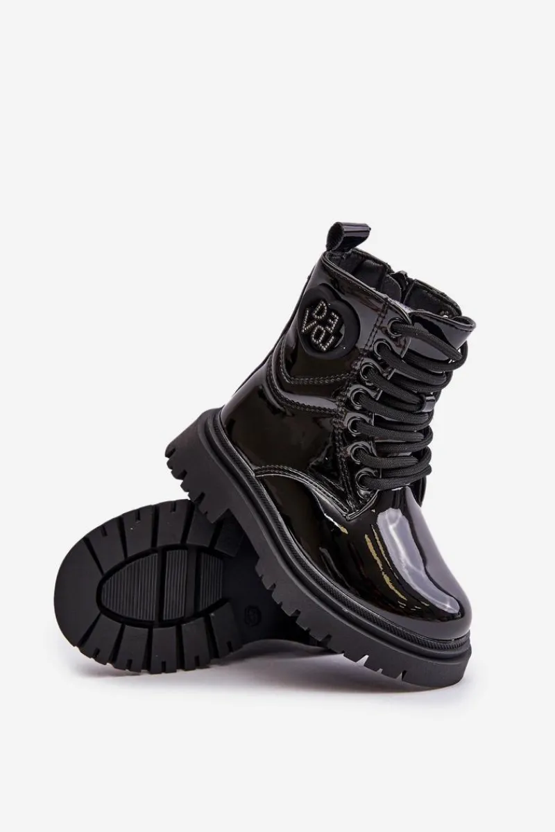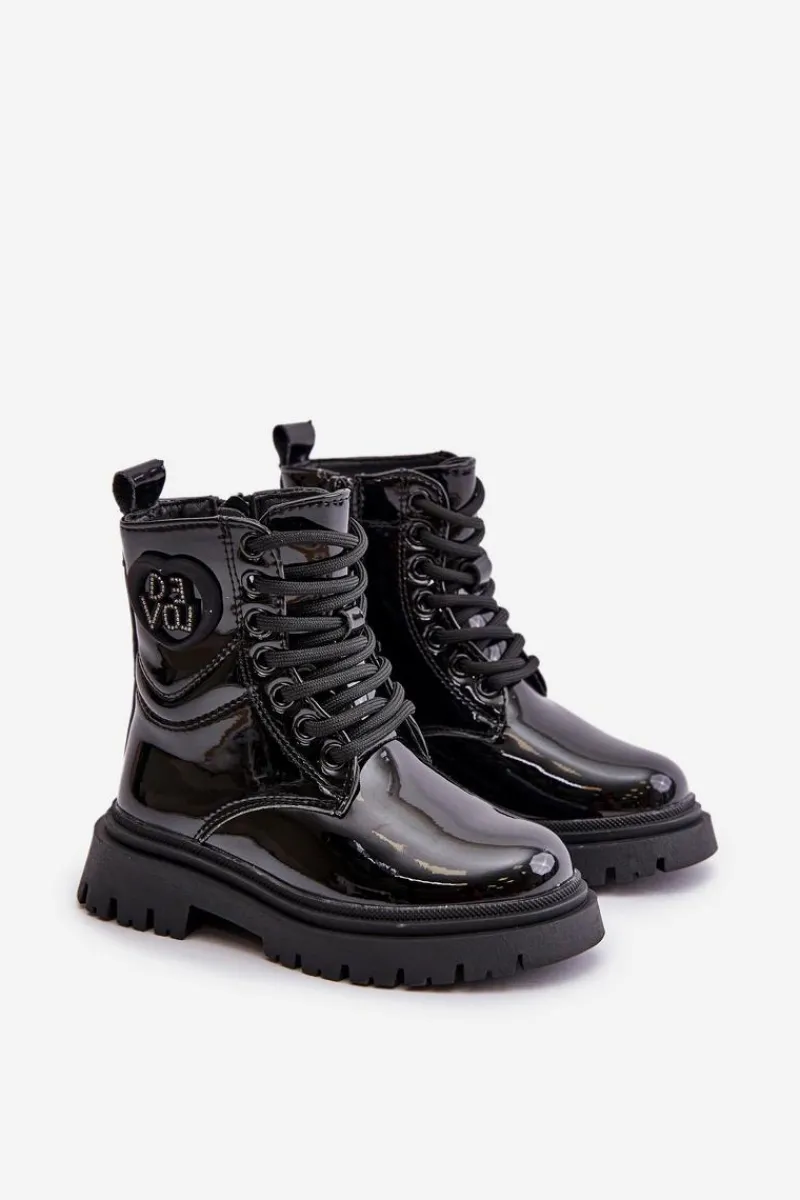 Dziewczęce botki wykonane z eko skóry to doskonały wybór na chłodniejsze dni. Model zapinany na zamek z boku oraz dodatkowo sznurowany, co gwarantuje idealne dopasowanie i stabilność. Wnętrze butów jest ocieplane miękkim futerkiem, zapewniającym ciepło i komfort przez cały dzień. Na cholewce znajduje się ozdoba, która dodaje wyjątkowego uroku. Przy wyborze rozmiaru prosimy kierować tabelą rozmiarów.